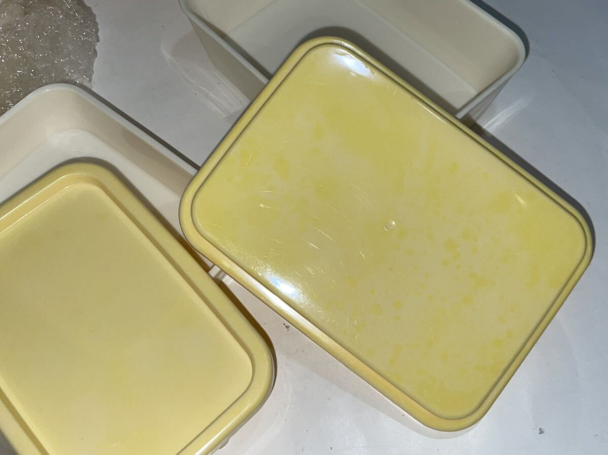 ◯上の段の大きめのお弁当箱の蓋に経年に伴うのか色ムラがあります