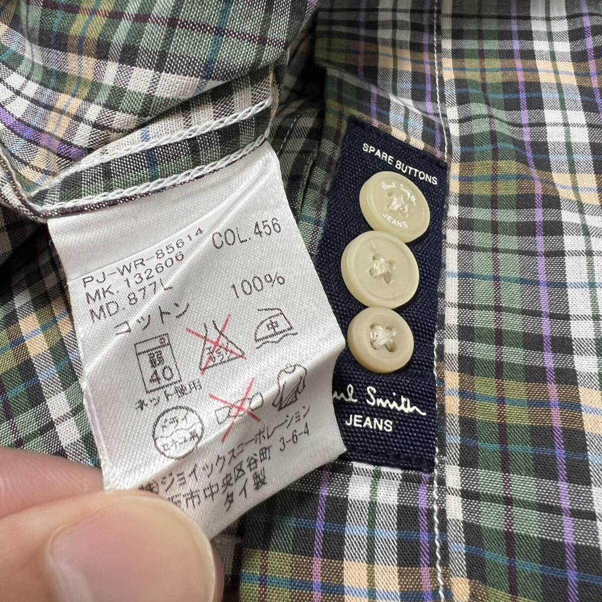 ★送料360円★美品 Paul Smith ポールスミス JEANS ジーンズ 長袖シャツ 綿100% コットン チェック柄 グリーン系 メンズ サイズL R-6233