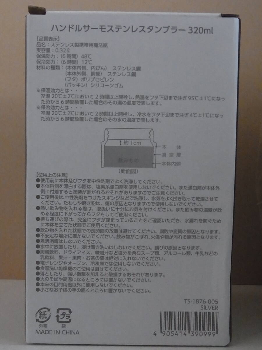 ◎ ハンドルサーモステンレスタンブラー 320ml TS-1876-005 SILVER ◎