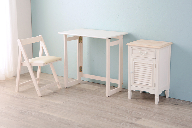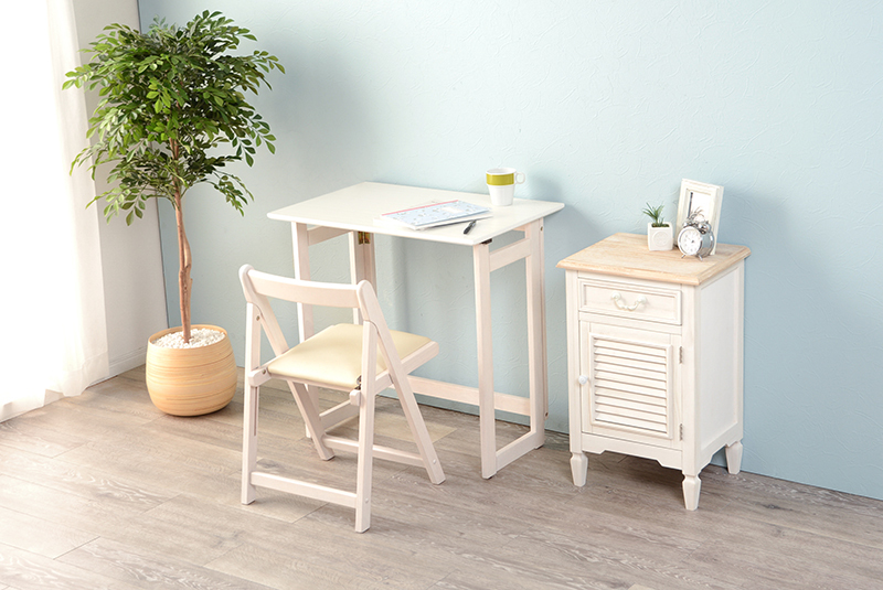 折りたたみ式なので収納や持ち運びに便利なデスク&チェアセット。