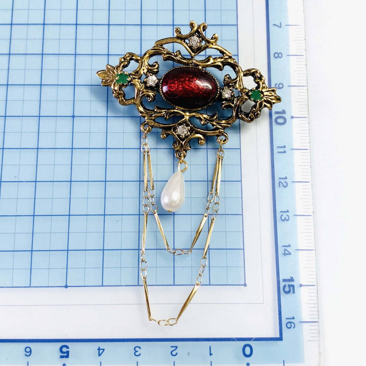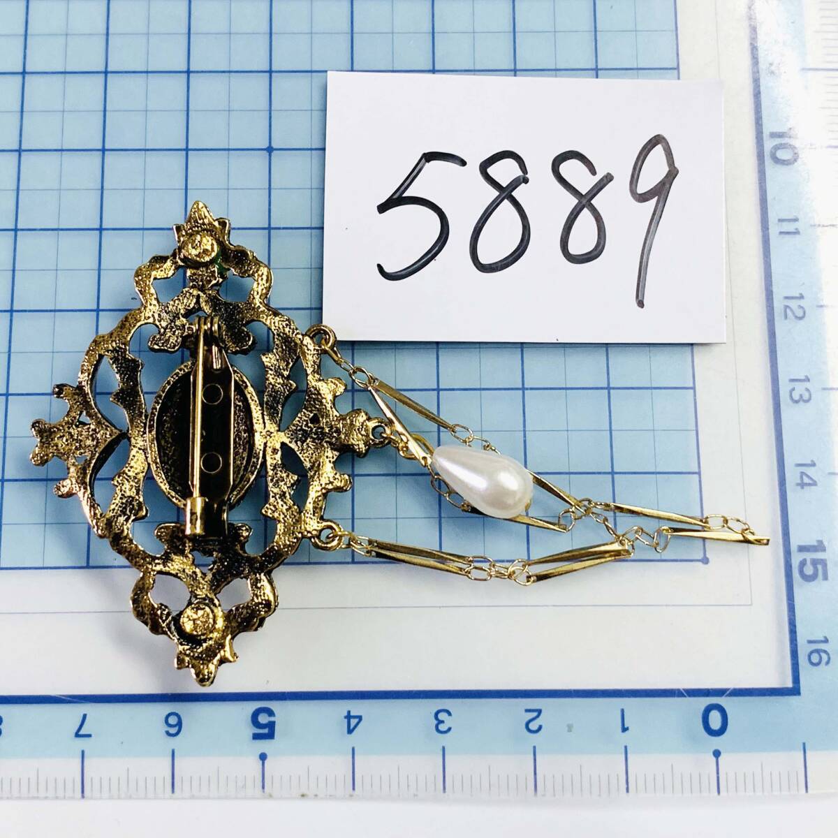 美品 フェイクパール ダイヤ風 エナメル ゴールド ブローチ No.5889