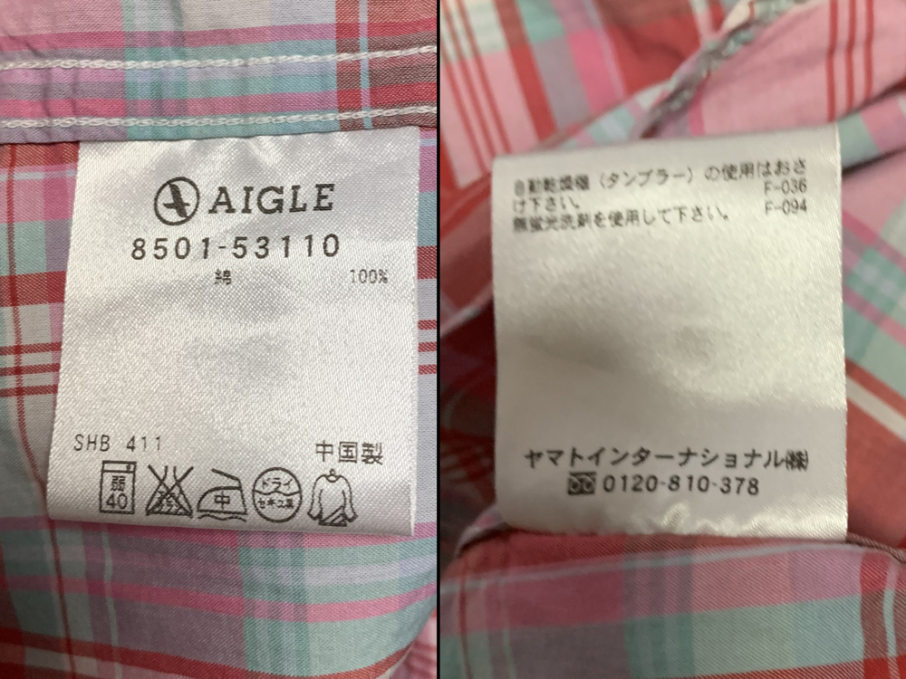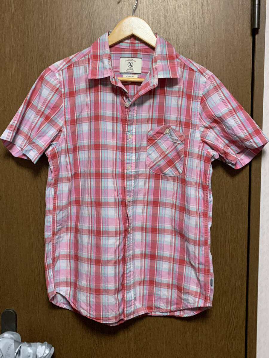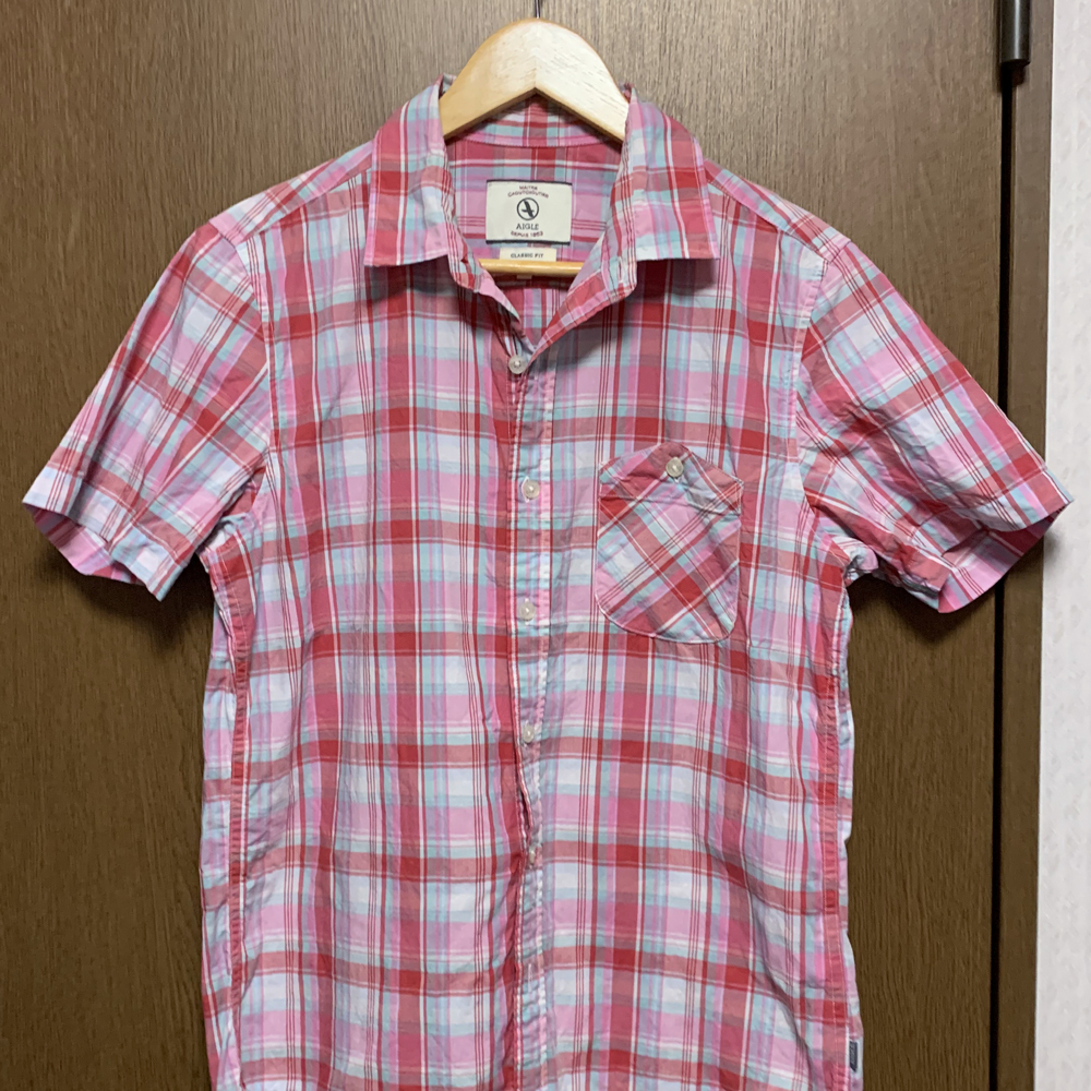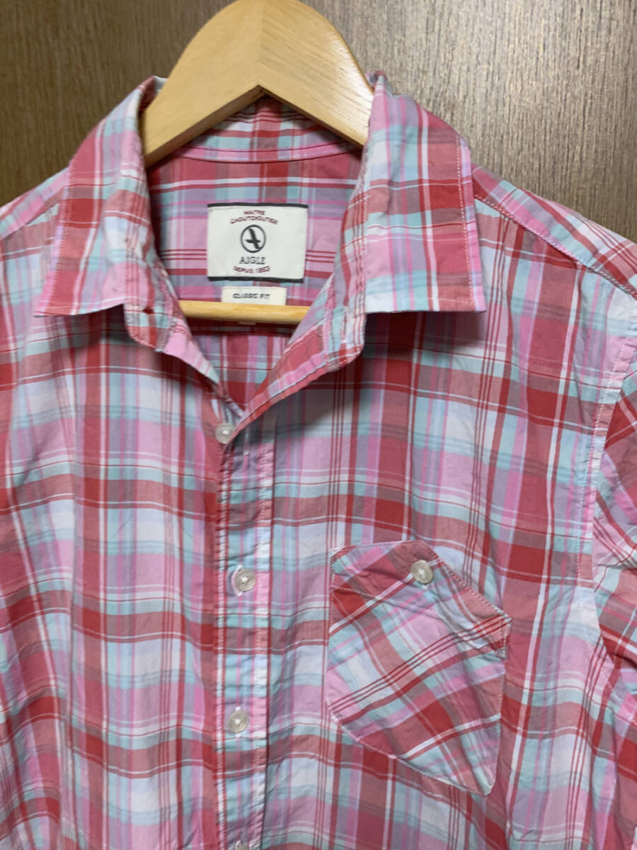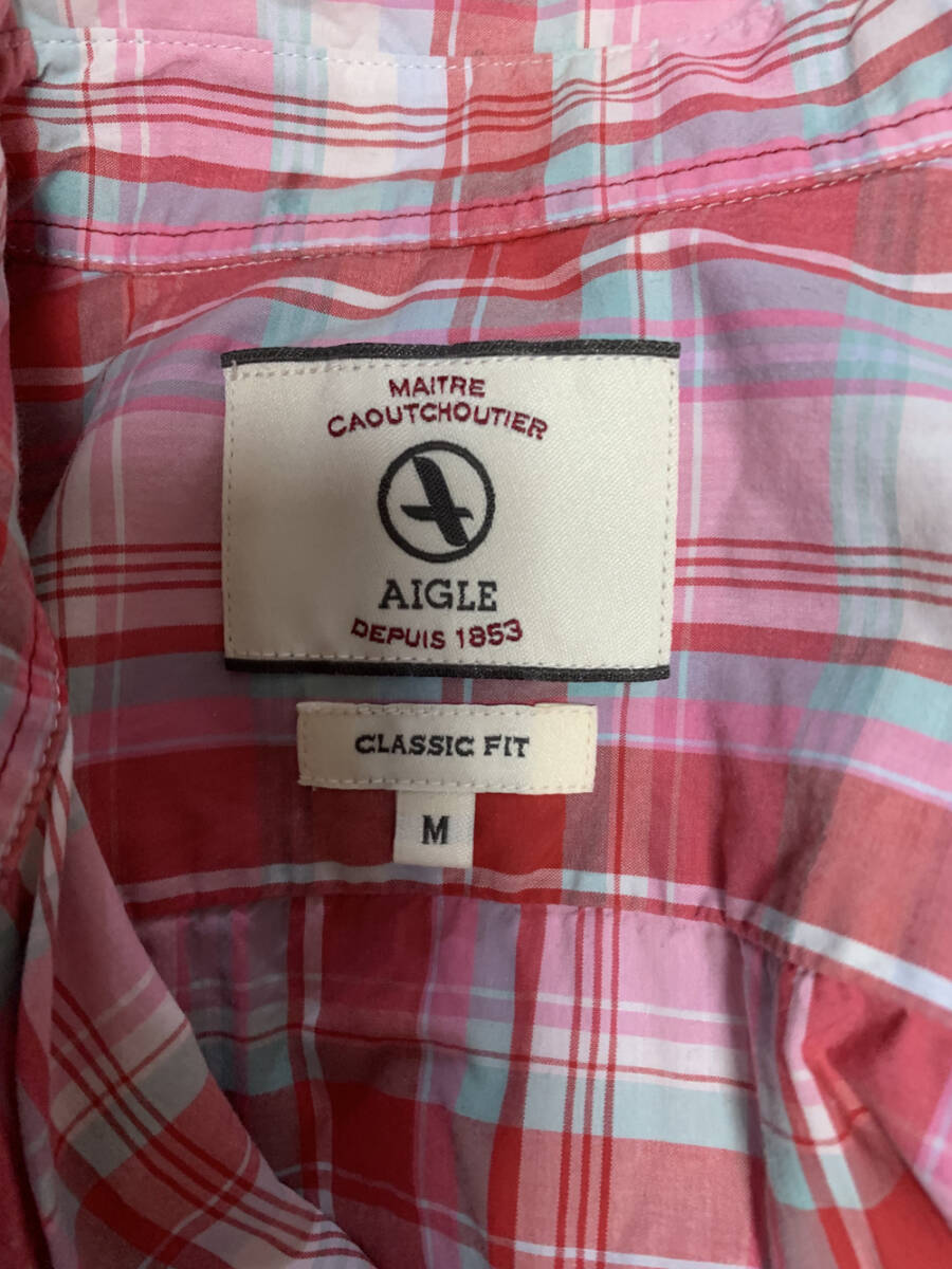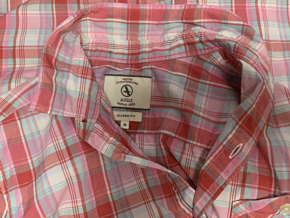 M AIGLE|エーグル 半袖シャツ ピンク~レッド系チェック柄 アウトドア