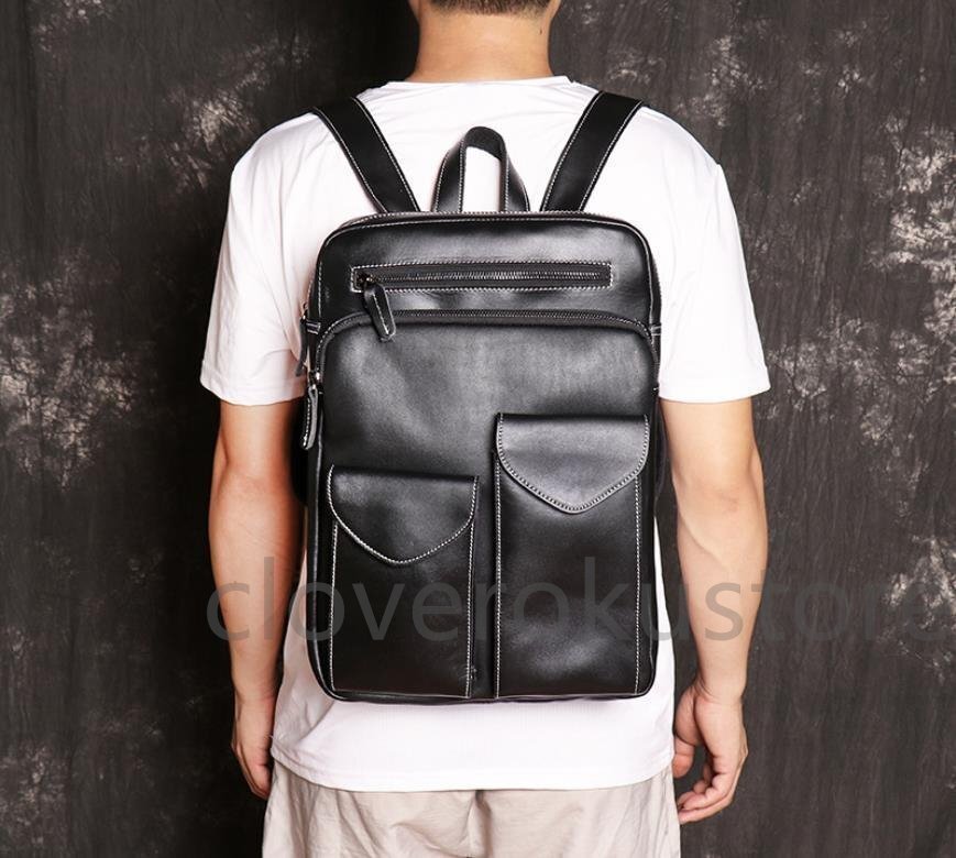 本革 リュックサック メンズ レザー バックパック レトロ リュック アウトドア 通勤通学 カジュアル兼用▲ブラック