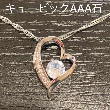 レディース アクセ アクセサリー ネックレス ジュエリー シルバー ハート チャーム シンプル 錆びにくい つけっぱなし 金属アレルギー キュービック