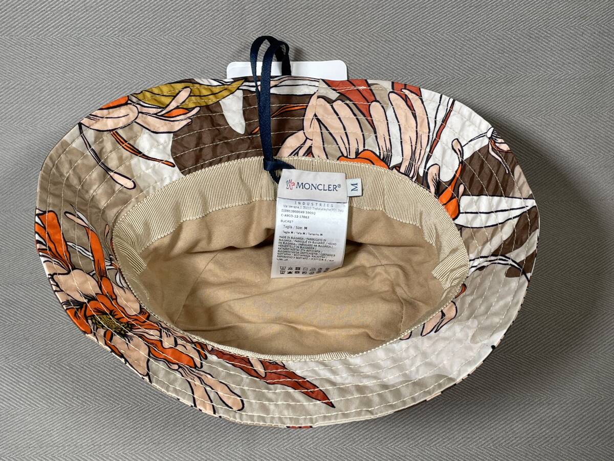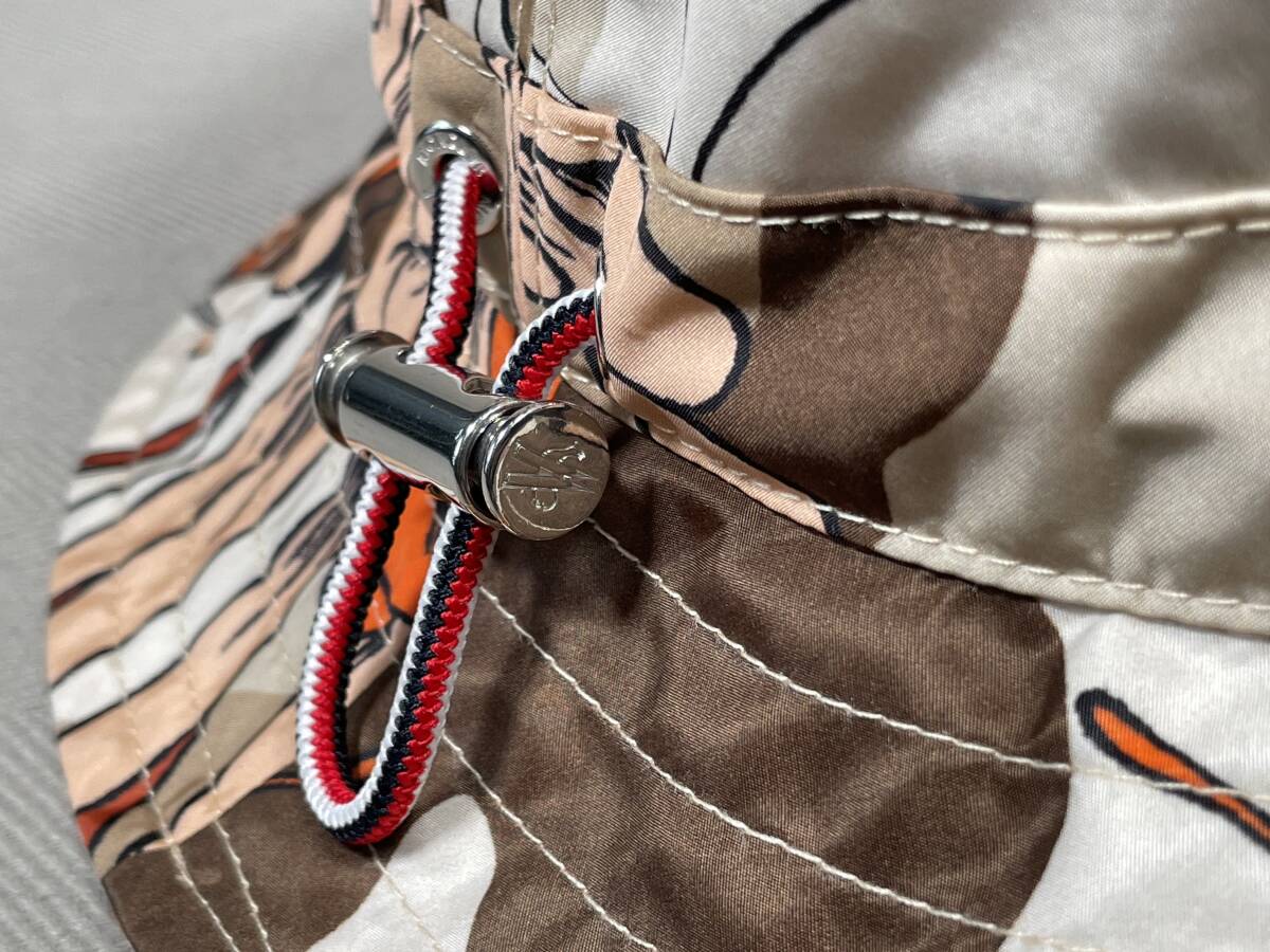 新品 本物 モンクレール MONCLER ロゴ 総柄 バケット ハット M ブラウン ベージュ 茶色 帽子 サファリハット バケットハット バケハ