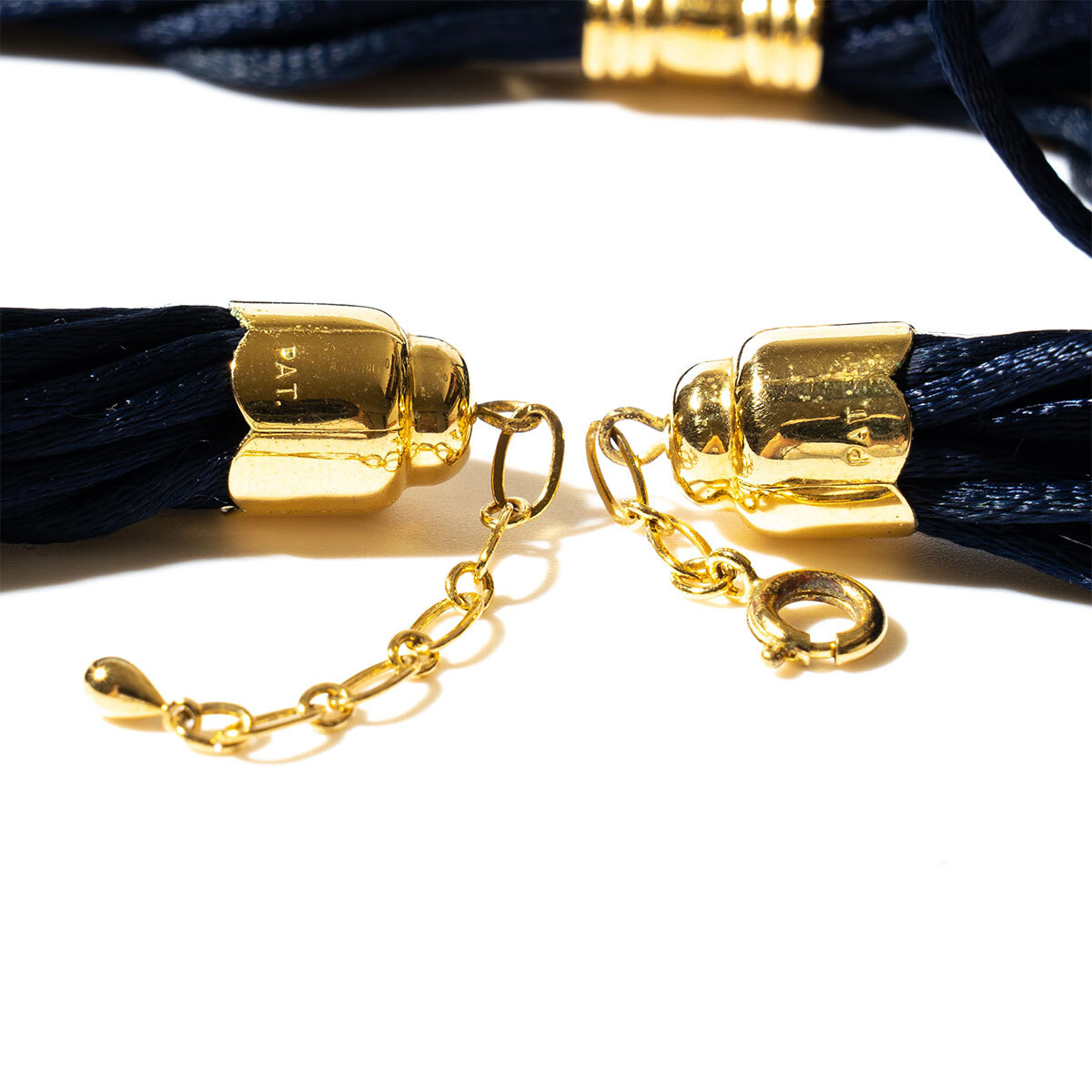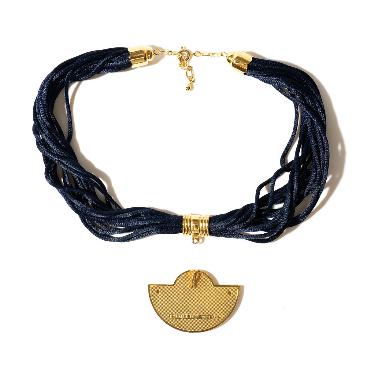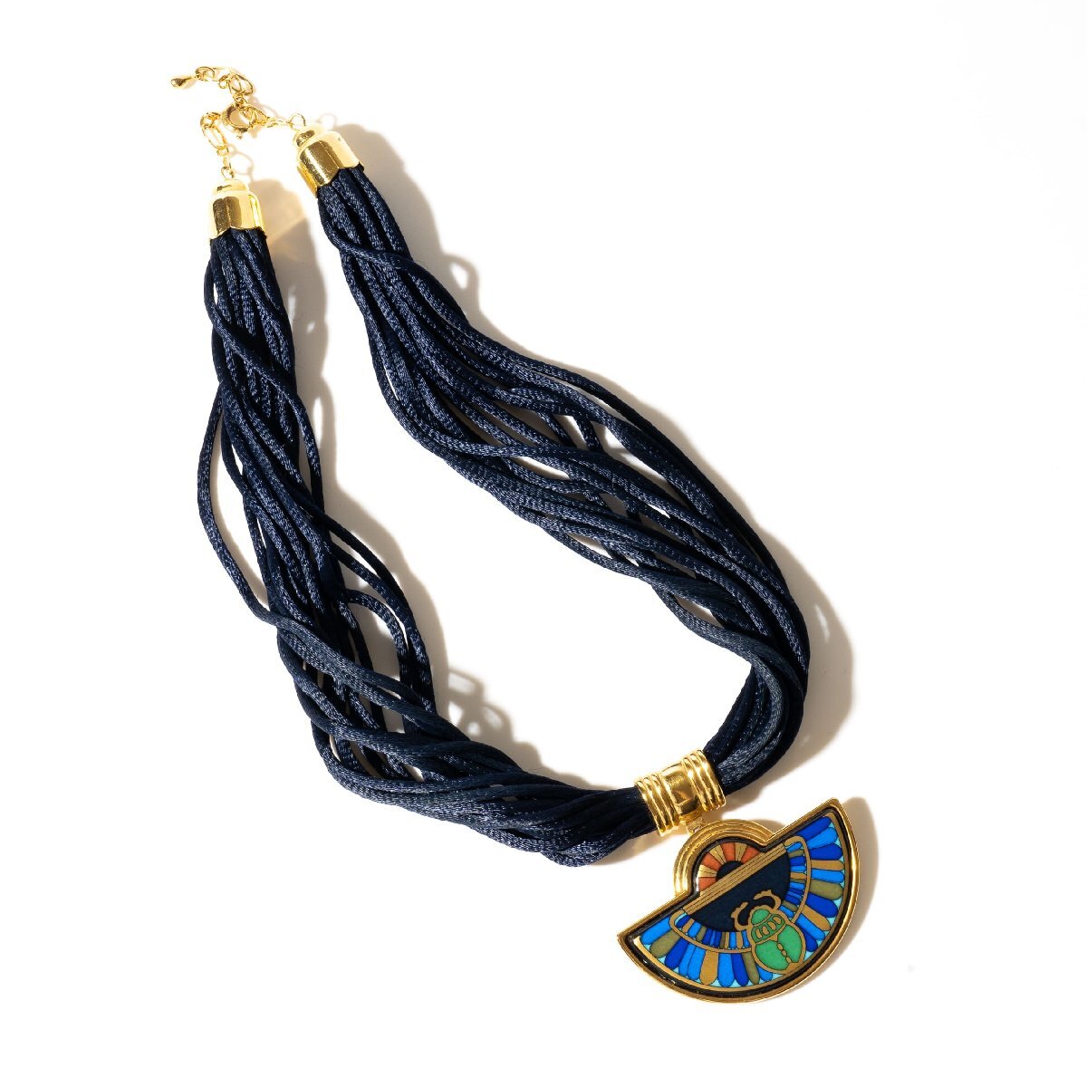 ネイビーを基調とした中に、鮮やかでヴィヴィッドなカラー使いがとても美しいネックレスです。