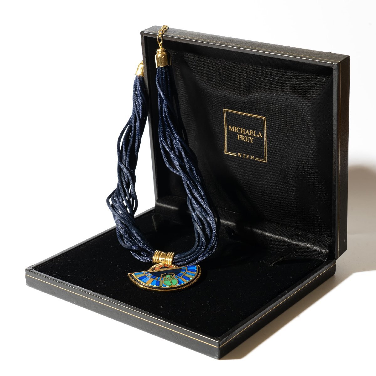 ★Vintage MICHAELA FREY WIEN scarab design half moon necklace