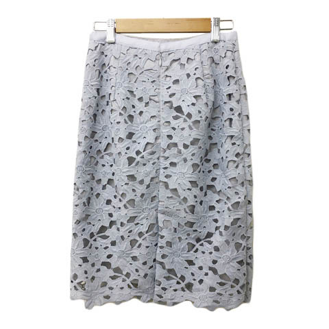 アプワイザーリッシェ Apuweiser-riche スカート タイト 膝丈 総レース 1 グレー 水色 ライトブルー レディース