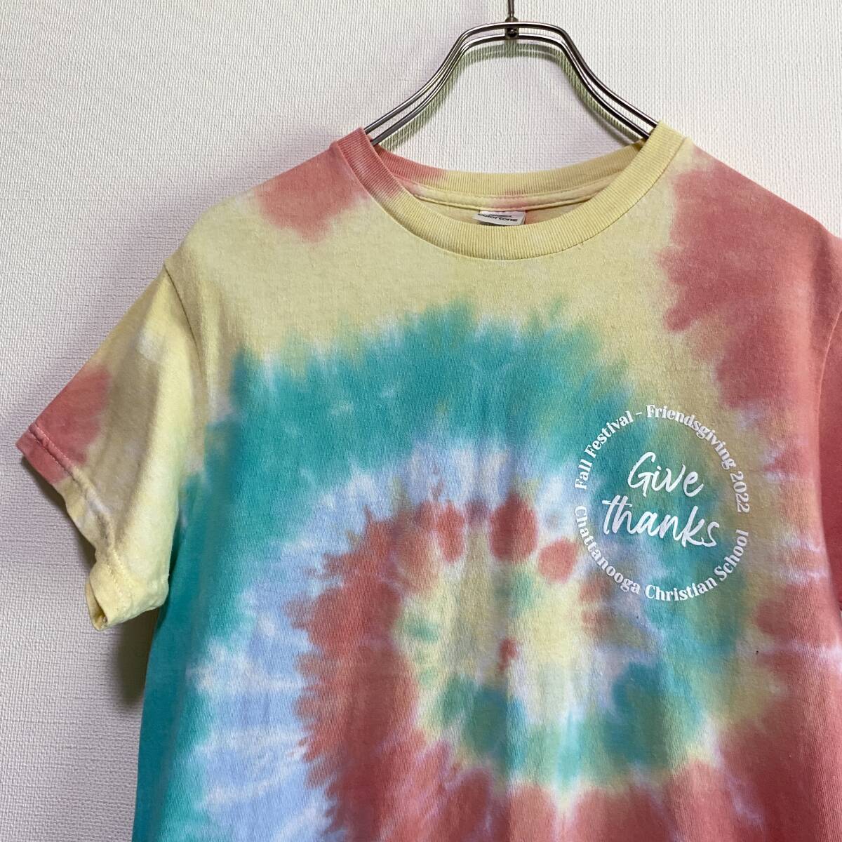 アメリカ古着 タイダイ 半袖 Tシャツ カラフル スパイラル US古着 クルーネック Sサイズ 【I940】