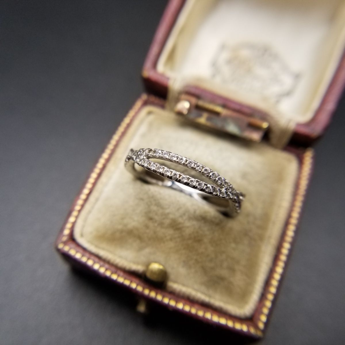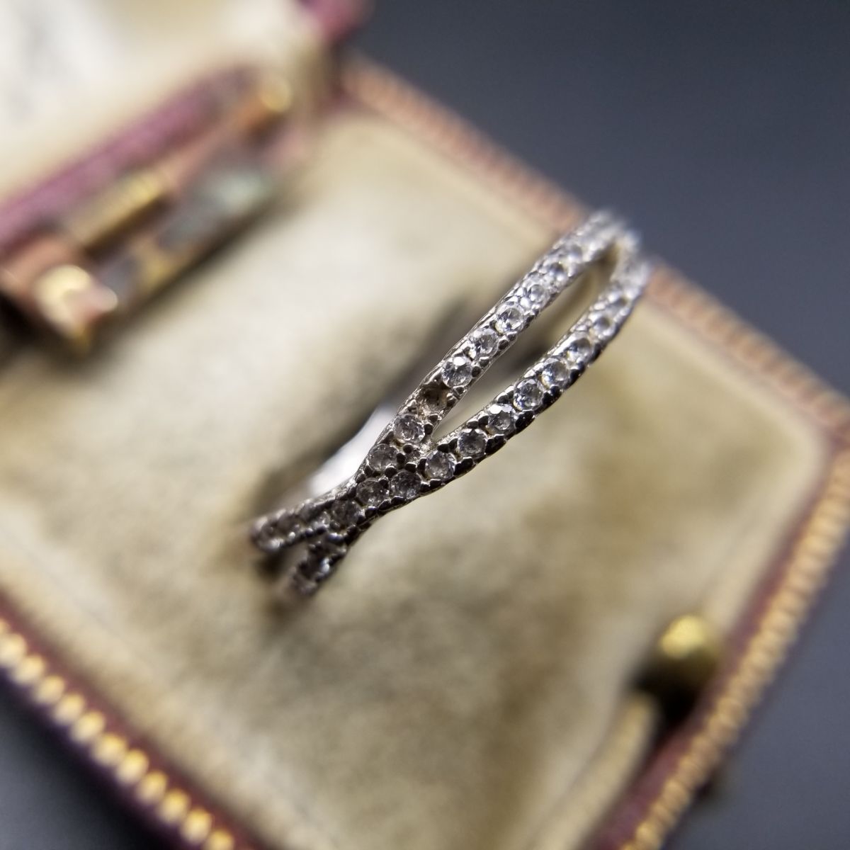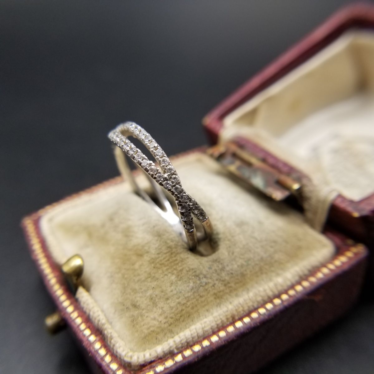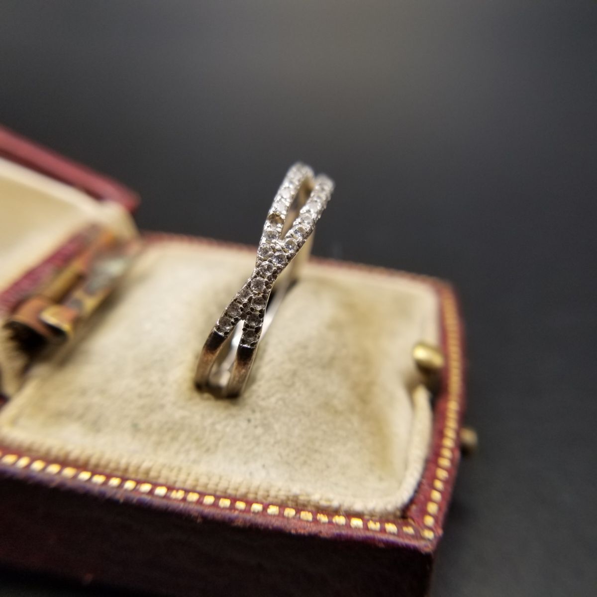 IBB キュービックジルコニア ハーフエタニティ 925 シルバー ヴィンテージ リング クロスウェーブ 上品 大きめサイズ Y17-N