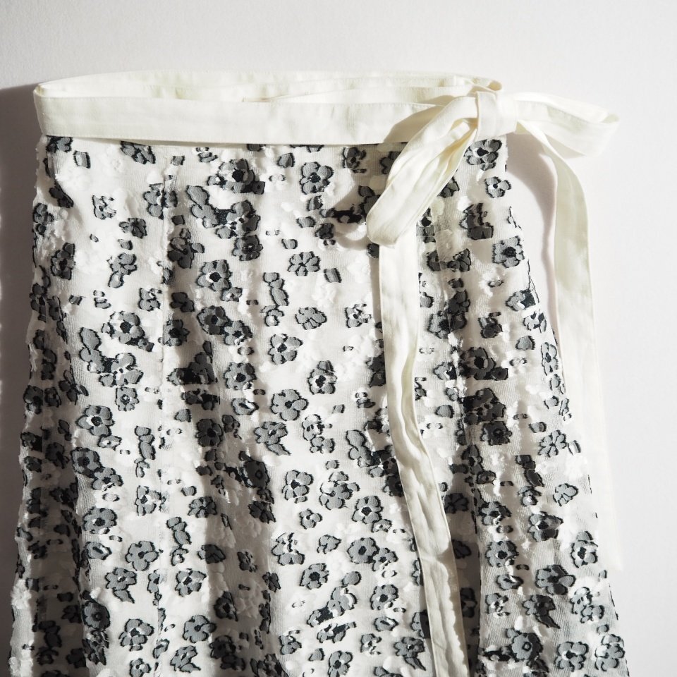シアー フラワージャカード ロングフレア ラップスカート ホワイト ブラック 38