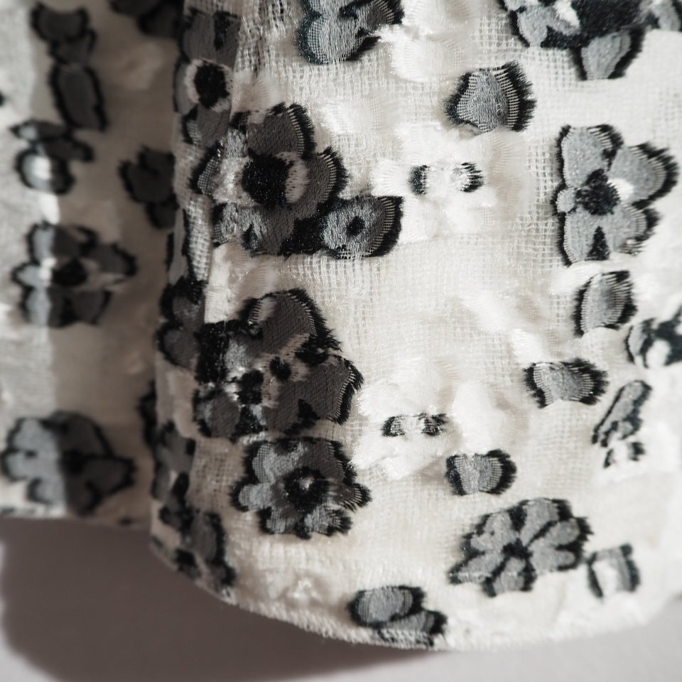 生地 :薄手で柔らかいハリのあるフラワージャカードのメッシュ生地・ウエストとリボンは別布