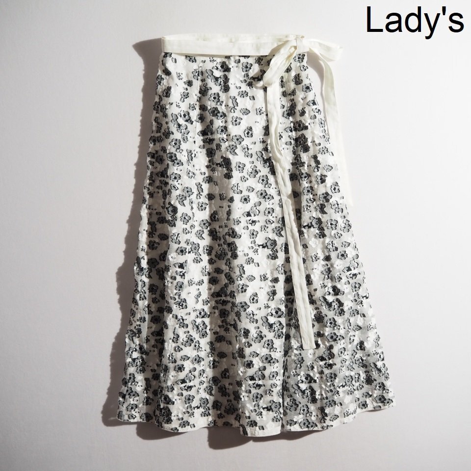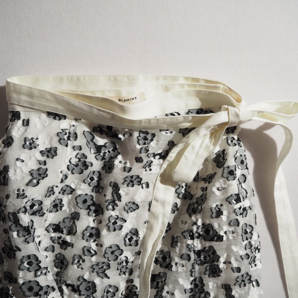 C2738P ▼BLAMINK ブラミンク▼ 新品 シアー フラワージャカード ラップスカート ホワイト ブラック 38 / 7924-299-0356 花柄 春夏 rb mks