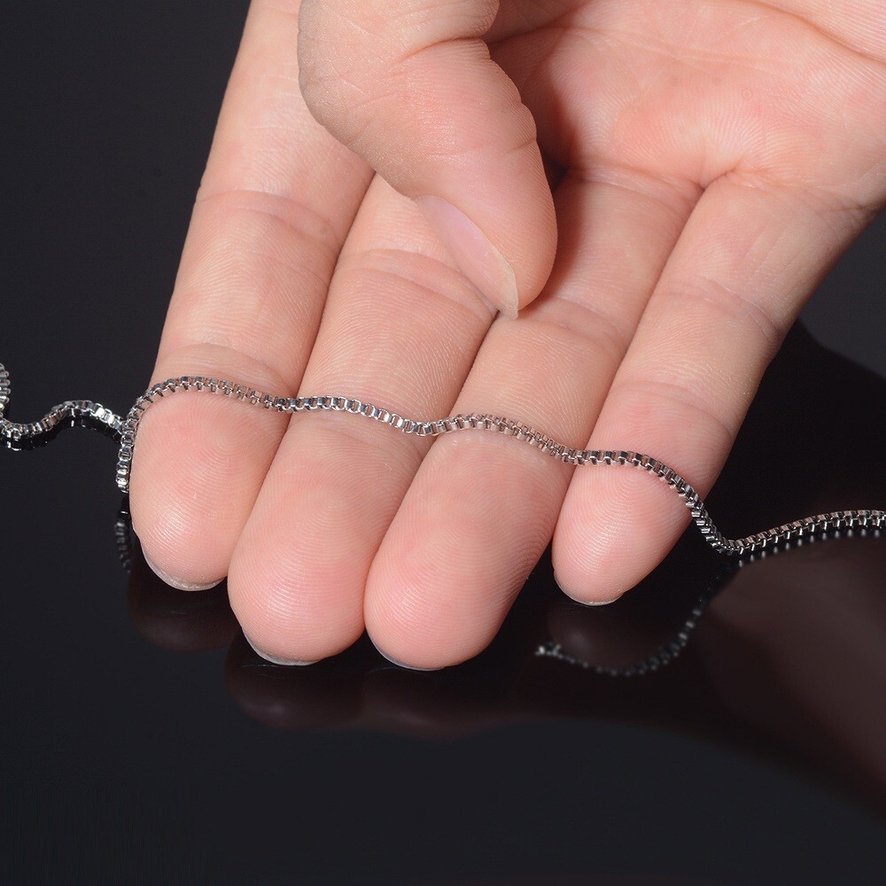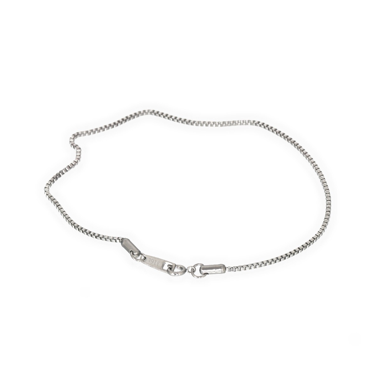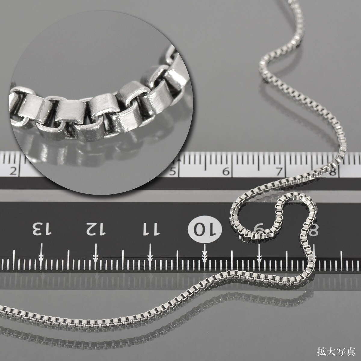 ベネチアンチェーンは正方形のコマが連なったデザインの定番チェーン。キューブ状のパーツが密に連なったボリューム感のあるデザインが特徴で、丈夫で切れにくいチェーンのひとつです。また、構造上絡まりにくく、万が一絡まった場合でも解きやすいチェーンです。ベネチアンという名前は、イタリアの都市ベネチアの家々のボックス型の窓の形に由来していると言われていますが、リンクスチェーン、ボックスチェーンといった名称で呼ばれる事もあります。 |