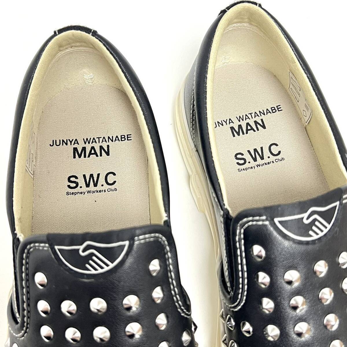 26cm 新品 コムデギャルソン コラボ スタッズ レザー スニーカー JUNYA WATANABE スリッポン シューズ ステファニー ワーカーズ クラブ 黒
