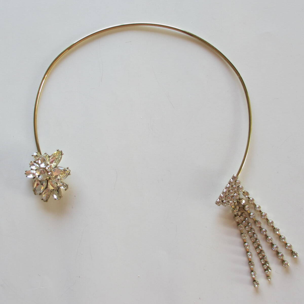 ラインストーンの素敵なお花のモチーフと流れるラインの美しさが、