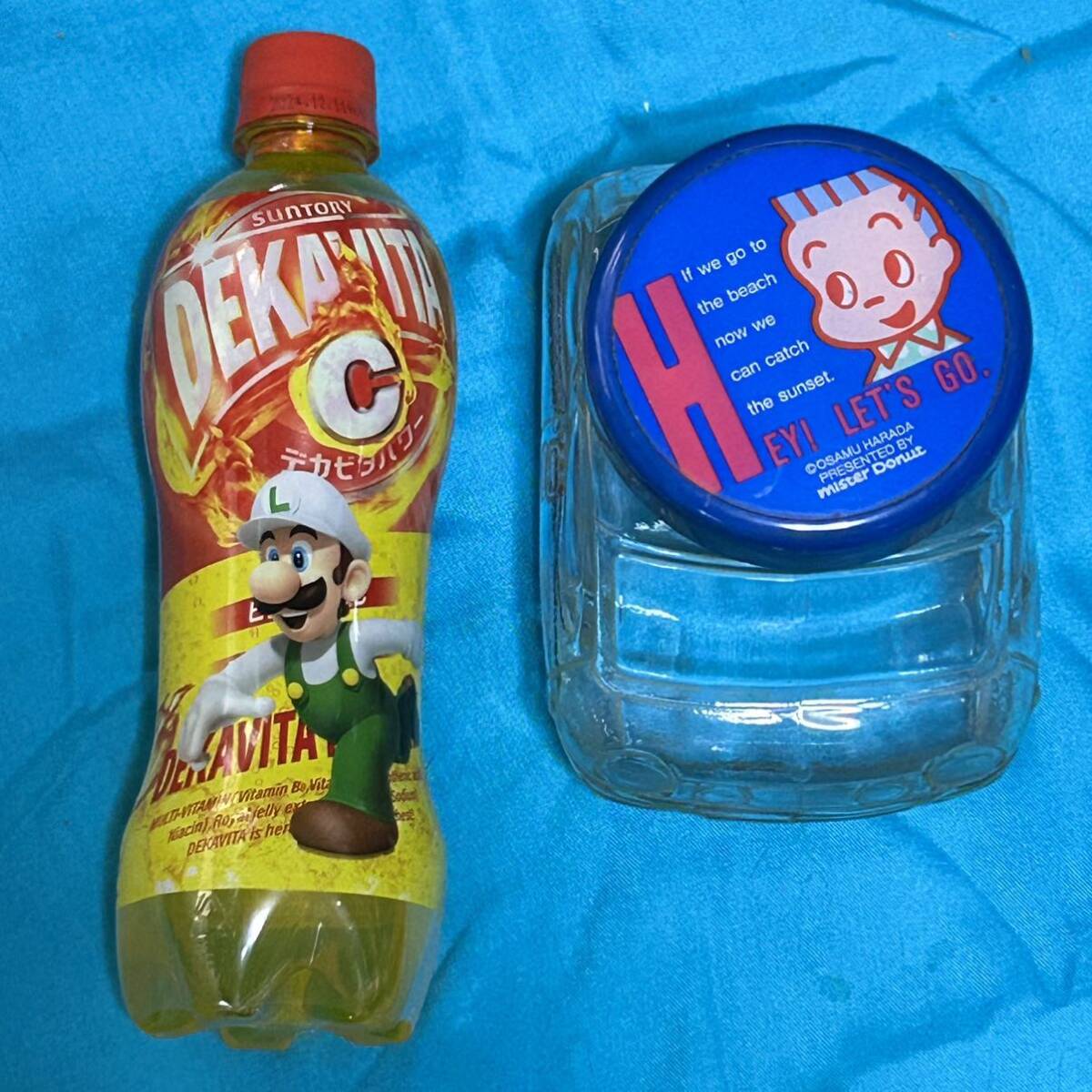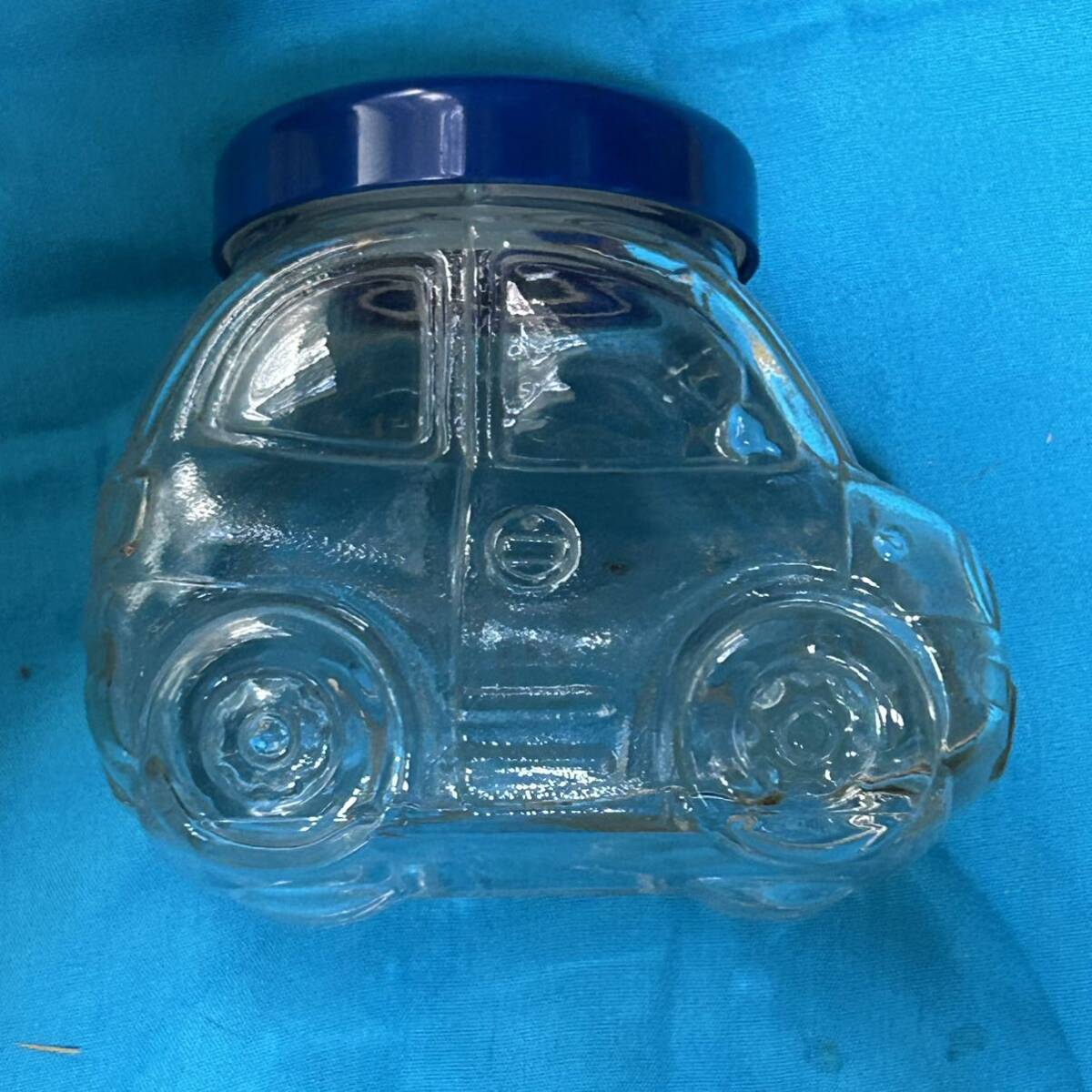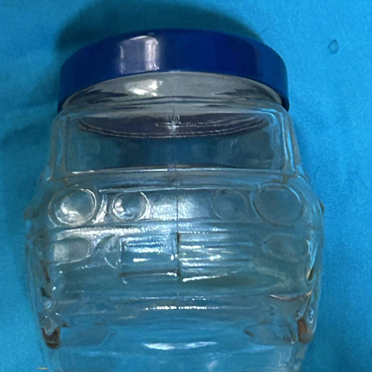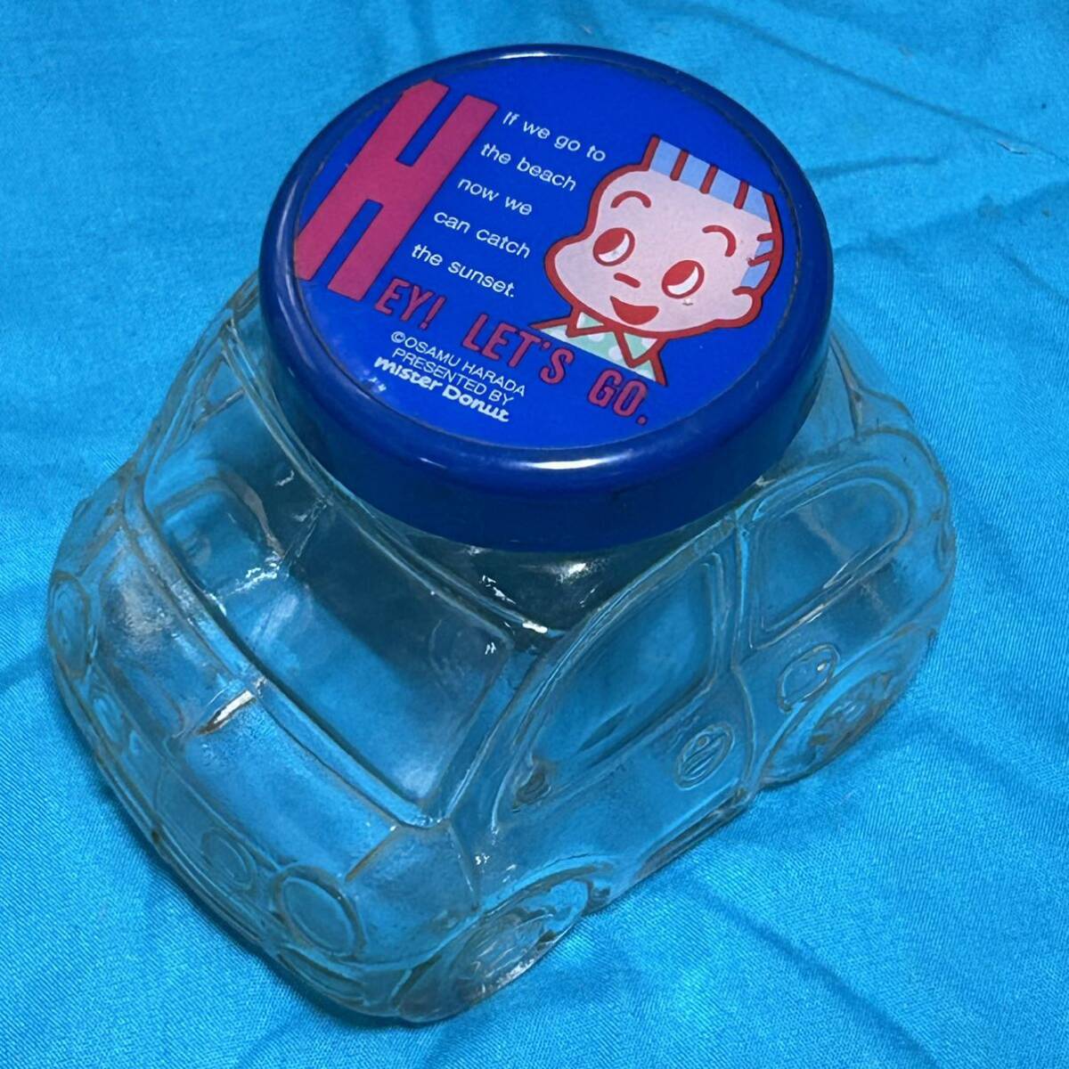 90年代はじめ頃のミスタードーナツで配布していた景品です。車の形をした厚手のガラスケースです。フタはプラスチック製になります。デザインはミスドお馴染みの原田治氏によるイラスト。駄菓子等を入れると懐かしい雰囲気出るかと思います。バブル期ならではの豪華景品ですね♪