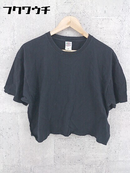 ◇ FRUIT OF THE LOOM フルーツオブザルーム リメイク品 ショート丈 半袖 Tシャツ カットソー サイズXL ブラック レディース