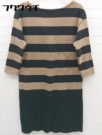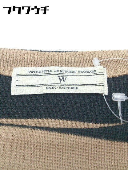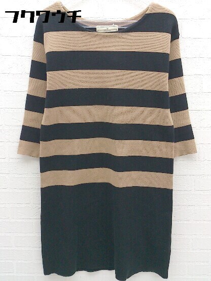 ◇ nano universe w ボーダー コットン ニット 長袖 膝丈 ワンピース サイズF ベージュ ブラック レディース