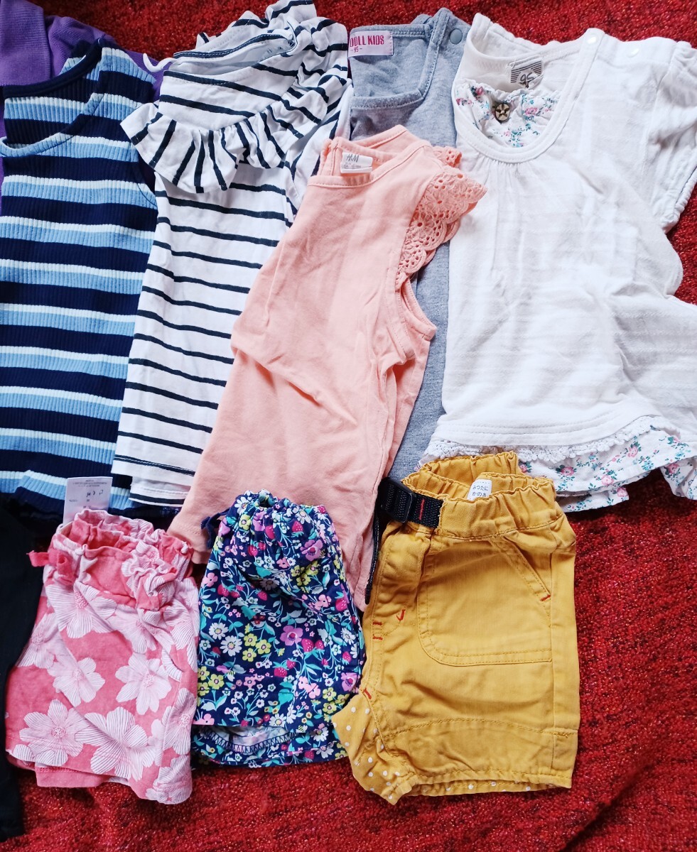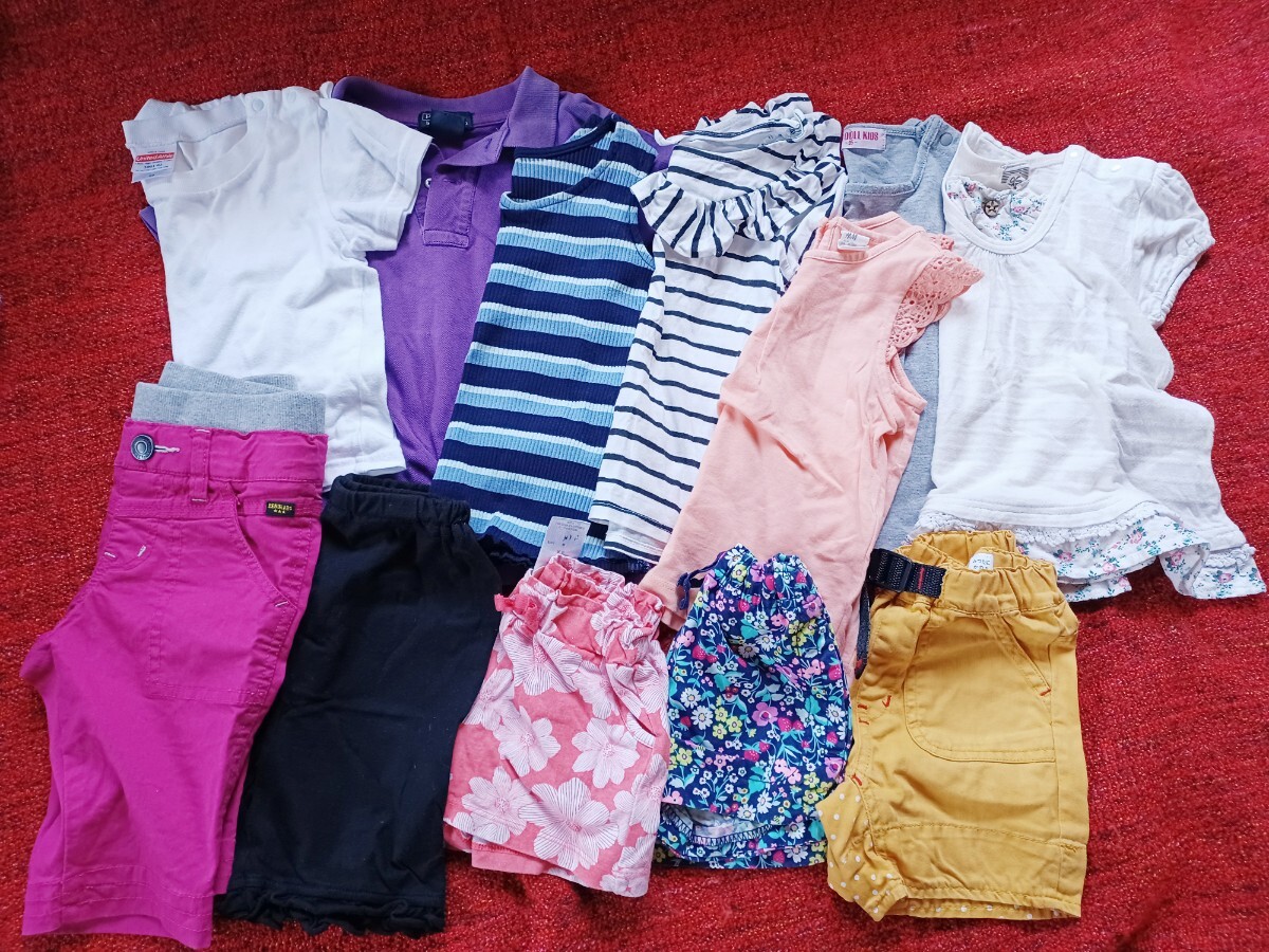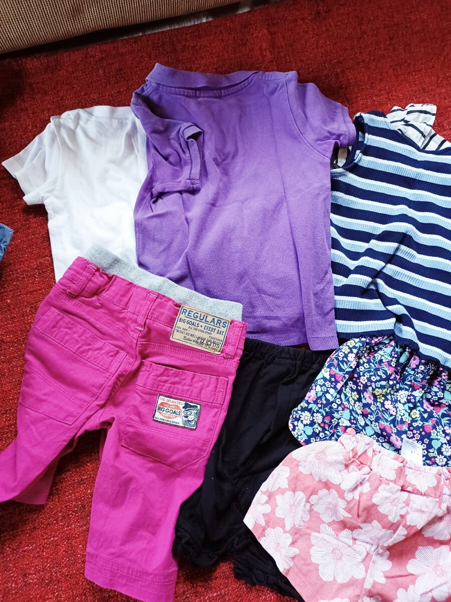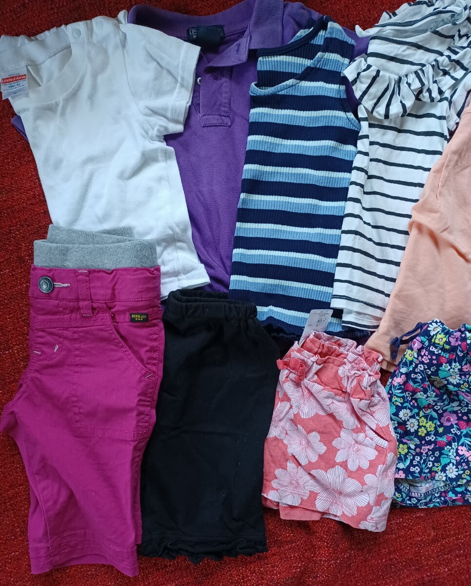 90サイズ カーターズ1点/黄土パンツ1点/スパッツ1点/H&M2点/GAPホワイト1点/紫ポロ1点/