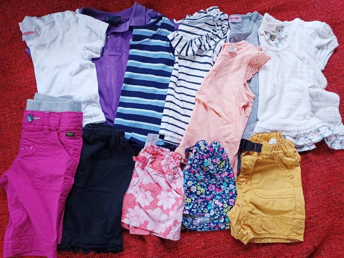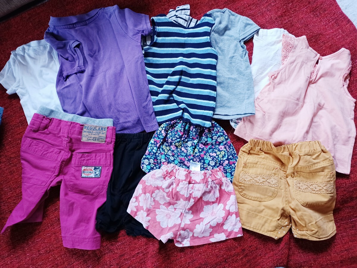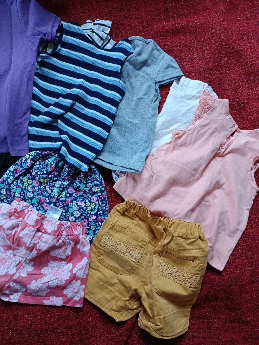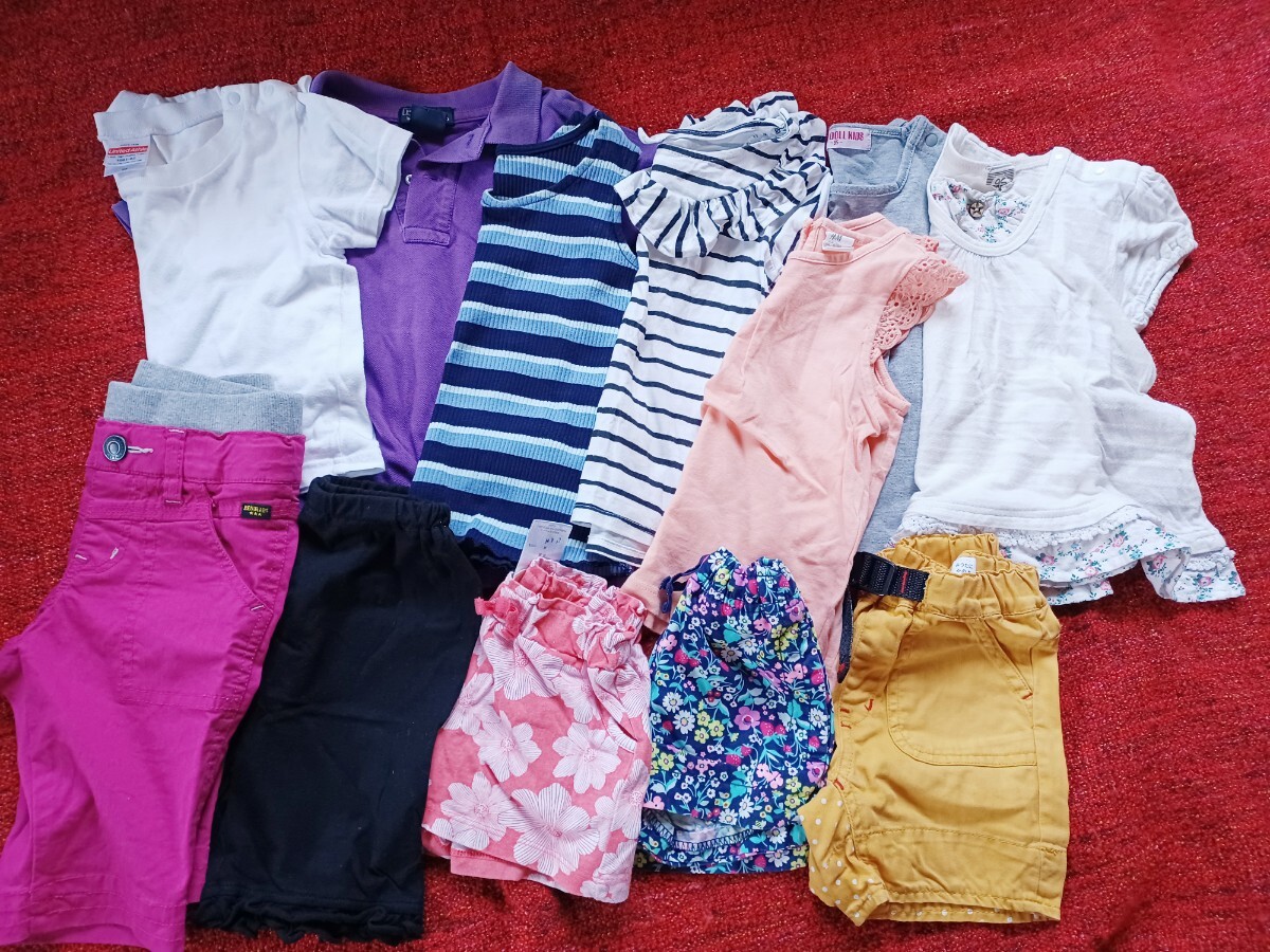 90サイズ カーターズ1点/黄土パンツ1点/スパッツ1点/H&M2点/GAPホワイト1点/紫ポロ1点/