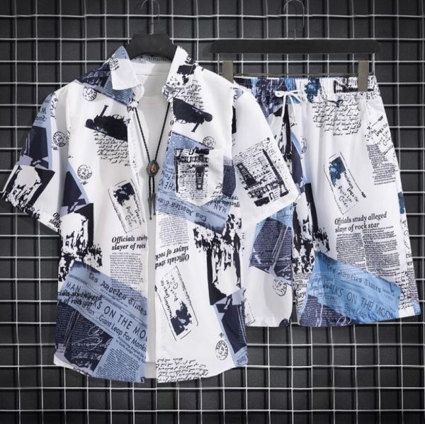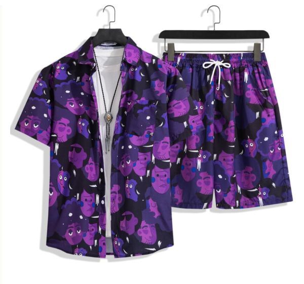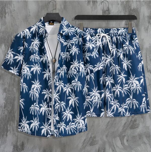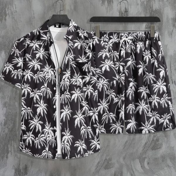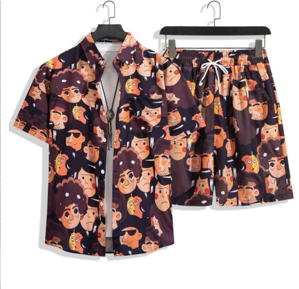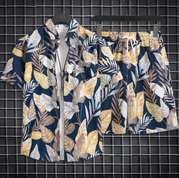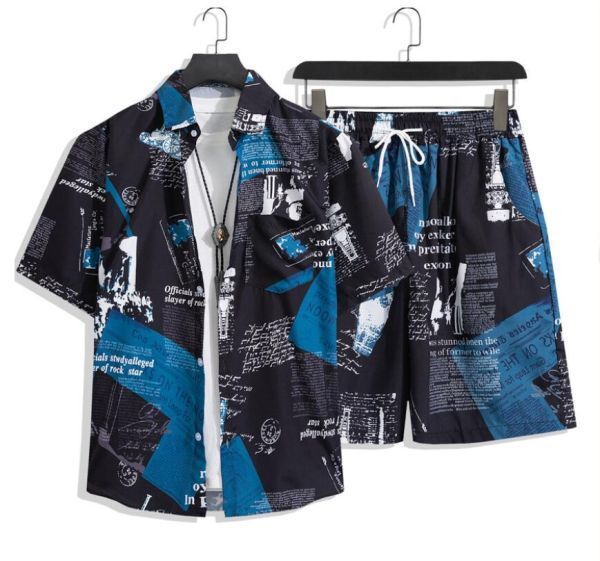 人気推薦 ジャージメンズ上下セットアップスウェット花柄半袖シャツ ハーフパンツ トレーナー部屋着ルームウェア 大きいサイズ 柄B