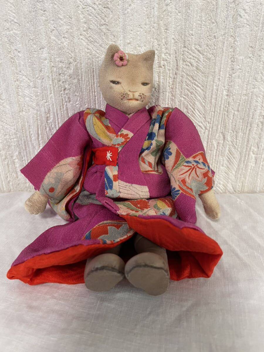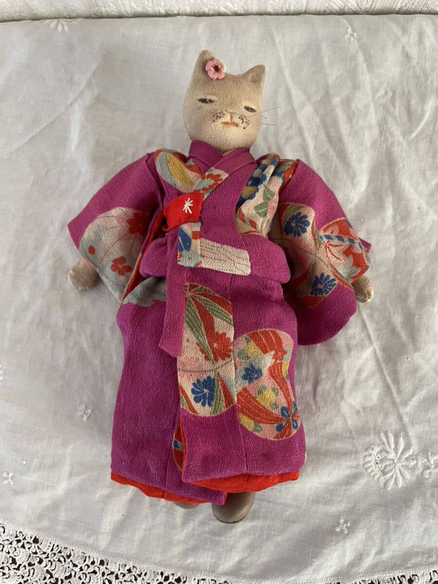 アンティーク着物を使ったねこの創作人形です。ハンドメイドですので1点ものです。