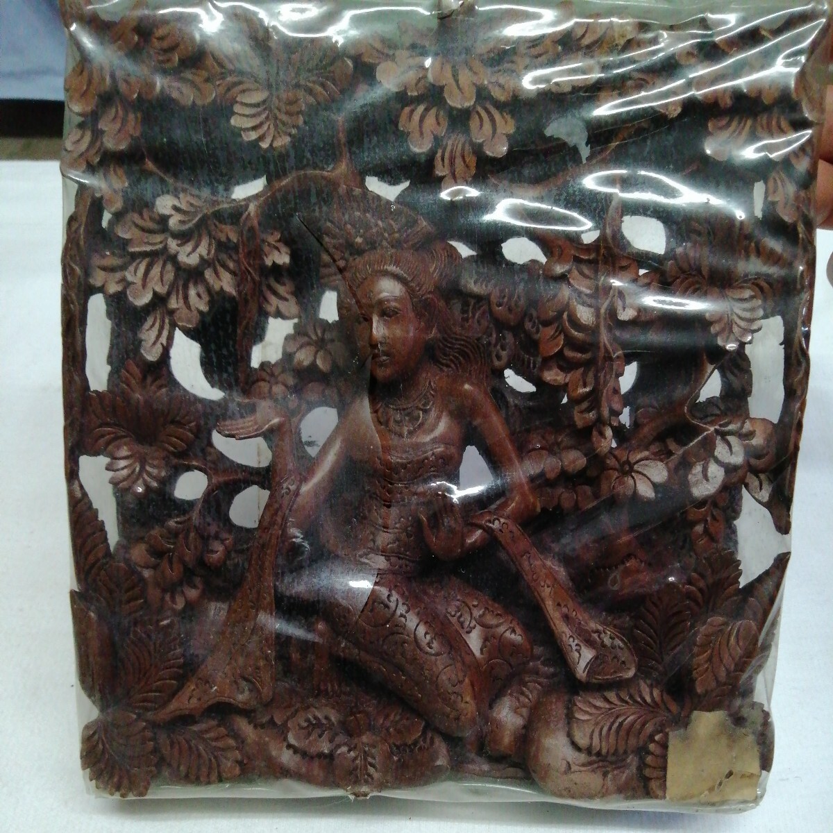 未開封 木製 外国 木彫 彫り物 飾り アンティーク 女性 花 華