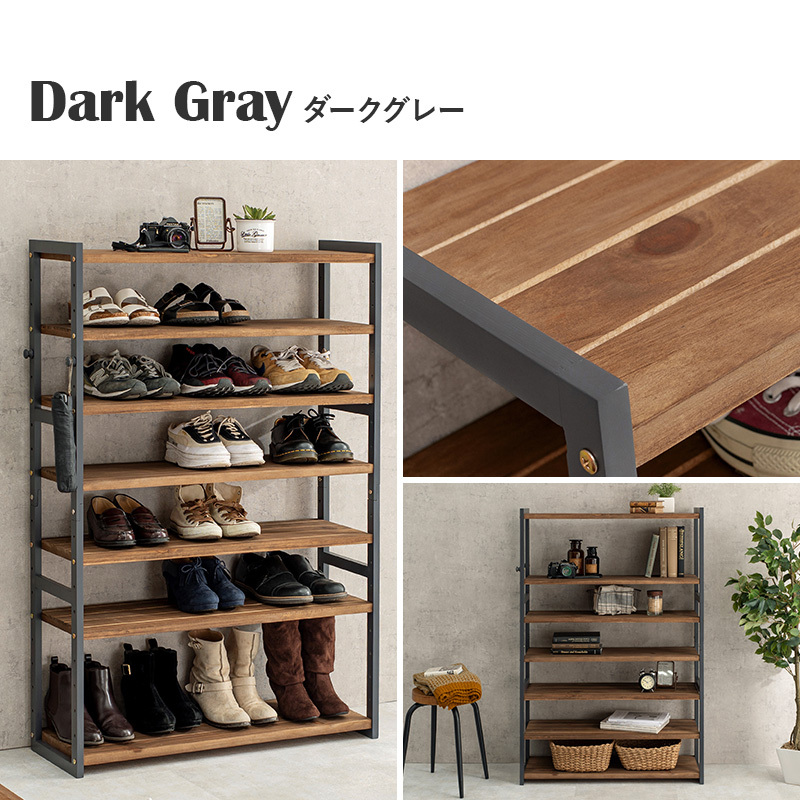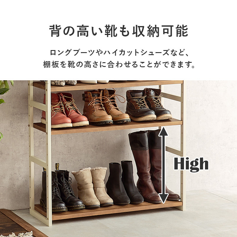 サンダルからブーツまで、靴の高さに合わせて棚の高さを組み換えできるシューズラック。