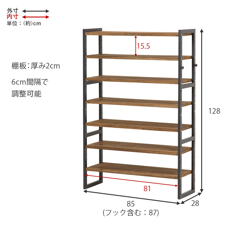 サイズ (約)幅85(フック含む87)×奥行28×高さ128cm