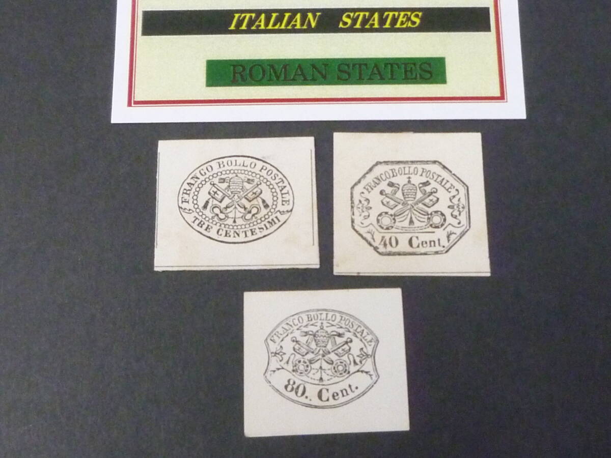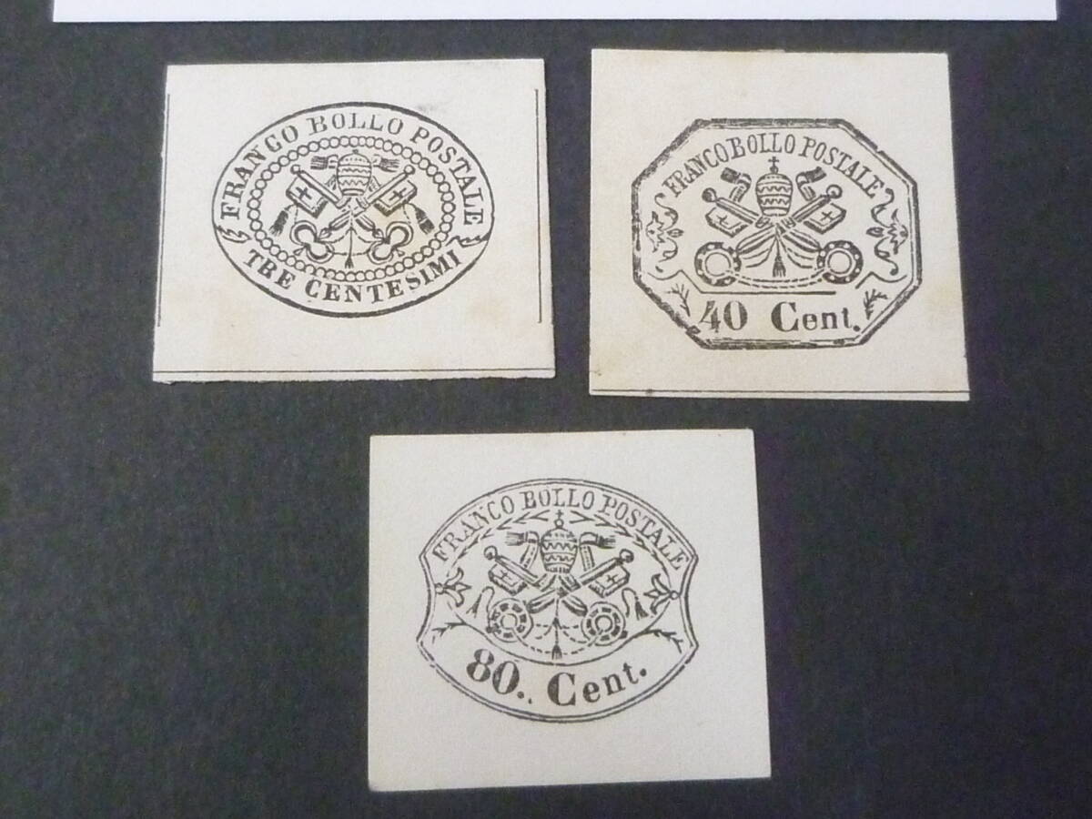 24 M №8 イタリア切手 ROMAN STATES 1867年 SC#13・17-18 黒紙試厚紙? 計3種 未使用OH ※説明欄必読