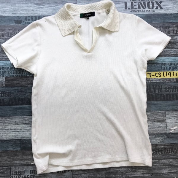 DESIGNWORKS デザインワークス レディース 日本製 オープンカラー ニット 半袖ポロシャツ 46 白 です。