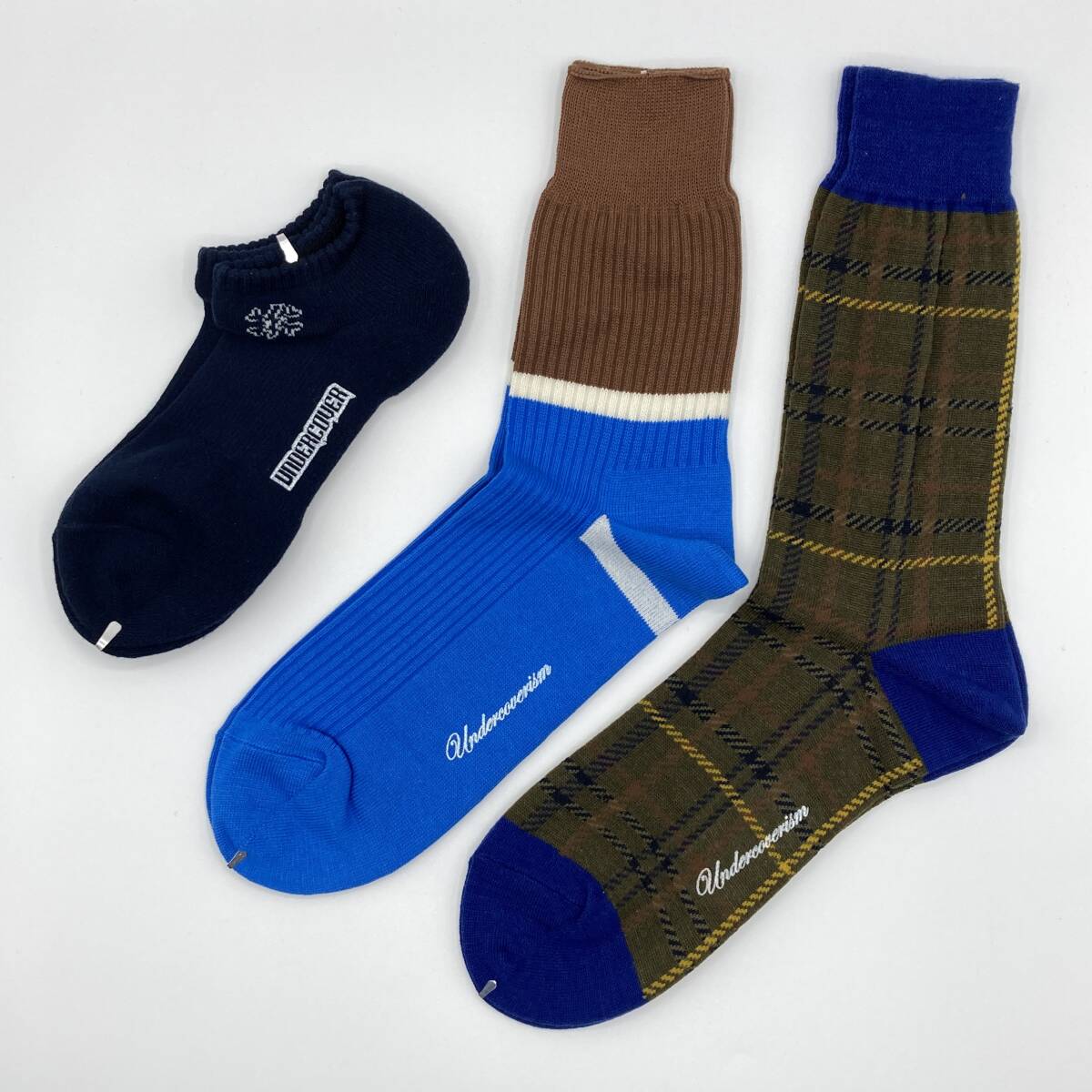 新品未使用品 UNDERCOVER SOX 3点セット ハイソックス くるぶし丈 サンダークロスボーン チェック バイカラー