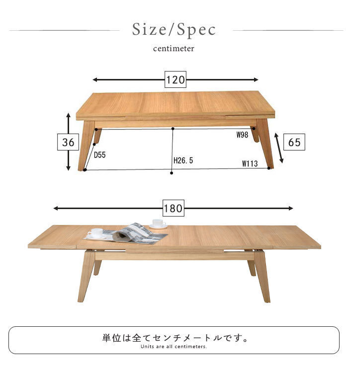 | 商品名 | 伸縮テーブル 北欧 120~180cm テーブル 伸縮 木製 天然木 幅120(180) 奥行65 高さ36cm インテリア テーブル センターテーブル |