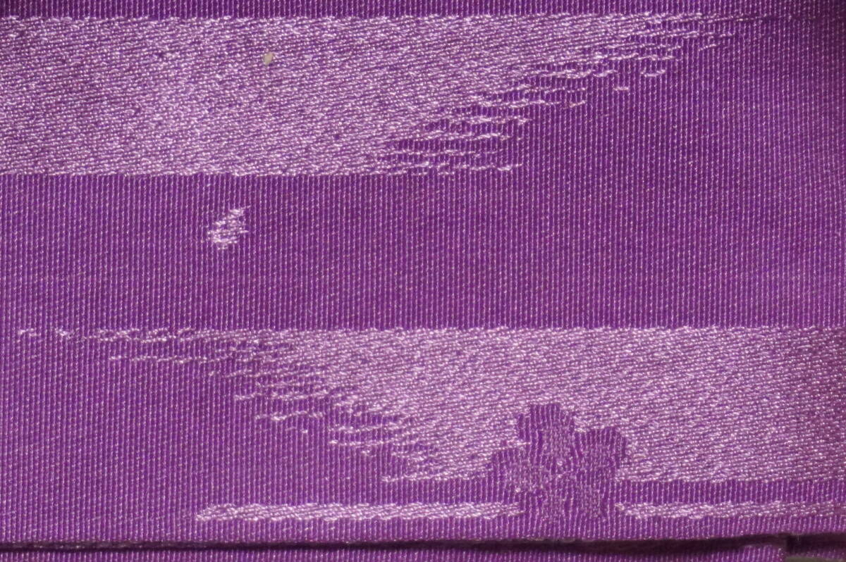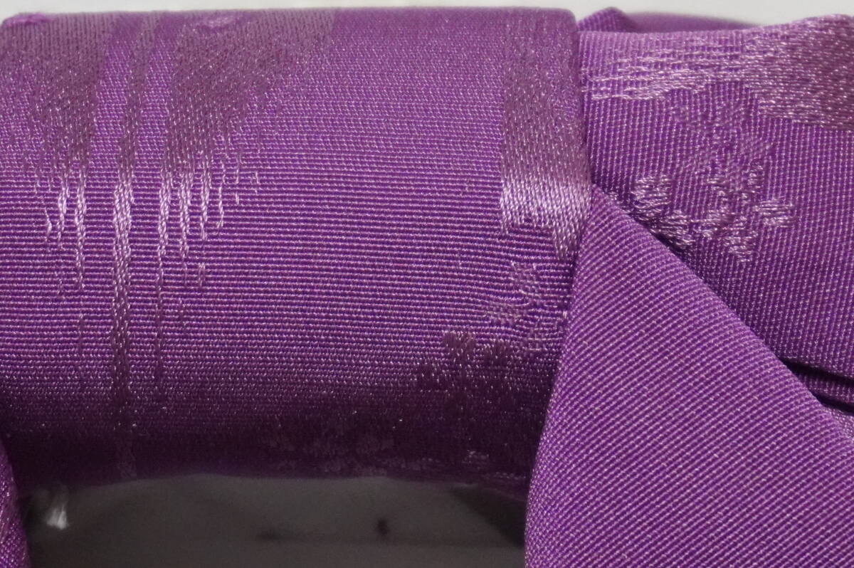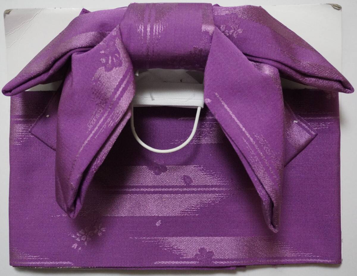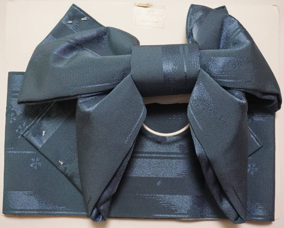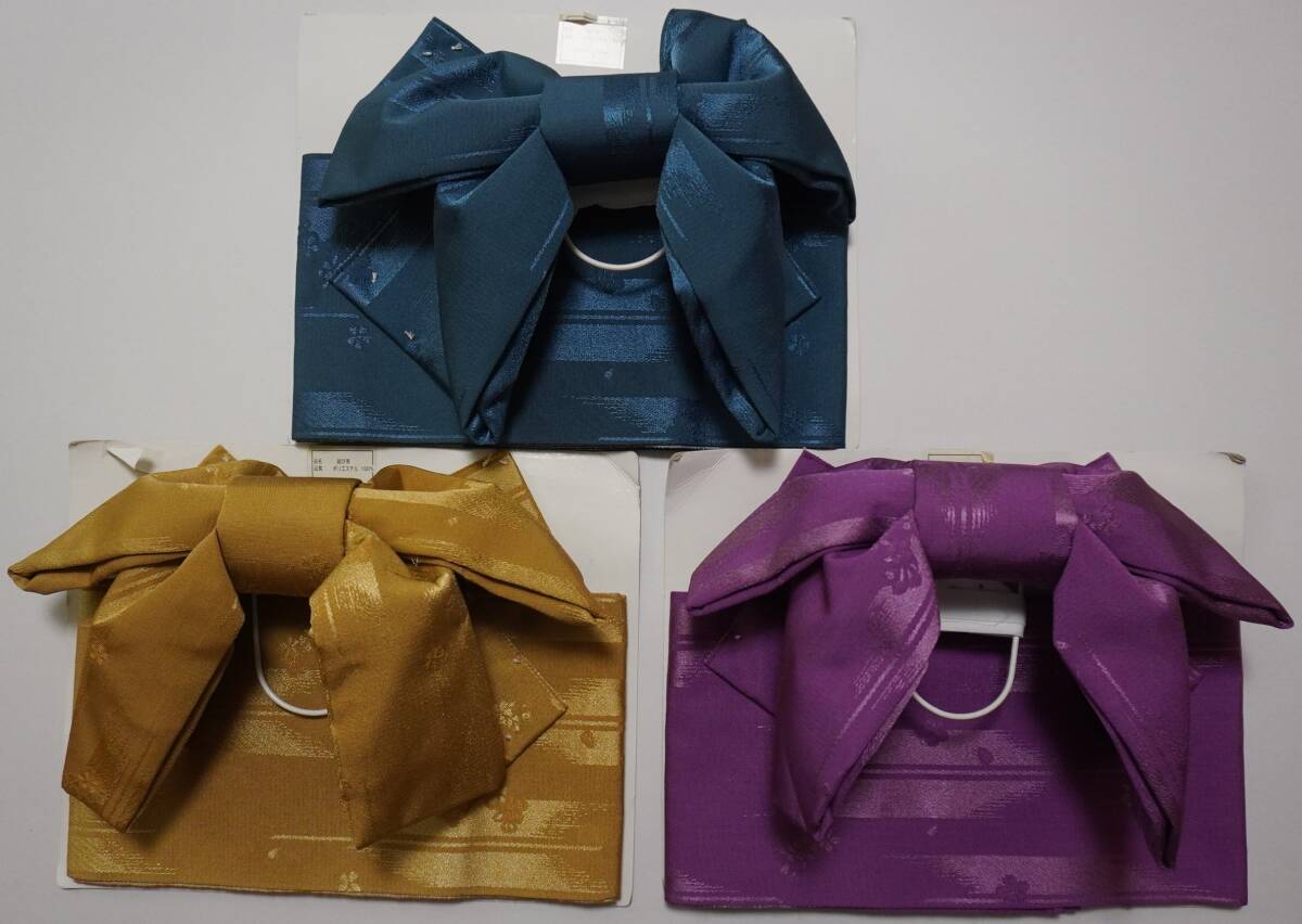 女性yukata用、地紋柄結び帯 青灰x1、枯草色x1、あかるい紫色(青紫ではありません)x1 (3点セット )ポリエステル 新品(波状の写りはレンズの光学的ないたずらで現品にはありません、また薄く濃く写っている場合もあります)、胴部--帯巾約16,5cmx長さ約130cm、リボン部は横に約30cm。見た範囲で汚れないと思いますが、着用に差し支えない薄汚れなど(多分ない?)はあってものお値段で出品です。
