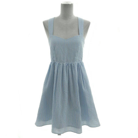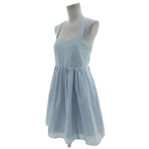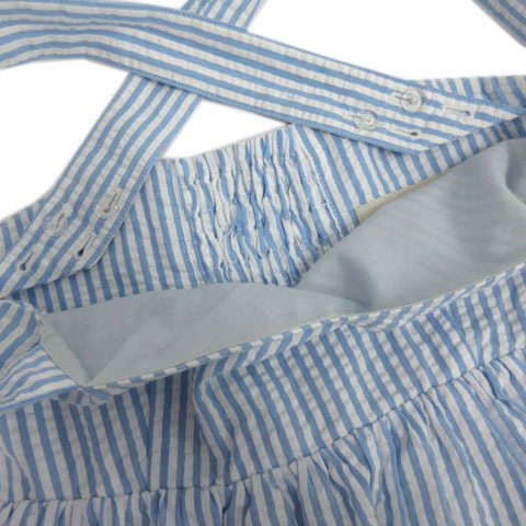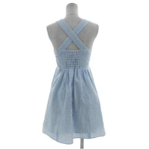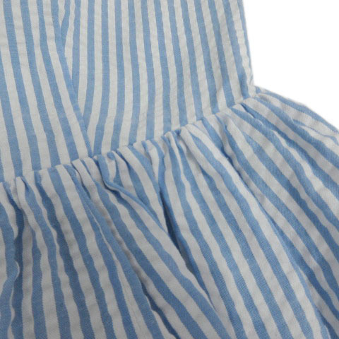 スローブ イエナ SLOBE IENA ワンピース ノースリーブ シアサッカー ギャザー ひざ上丈 ウエストゴム ストライプ ブルー系 水色 白 F