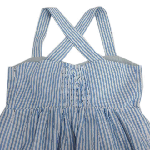 【仕様】ワンピース ノースリーブ シアサッカー ギャザー ひざ上丈 ウエストゴム ストライプ ポケットなし 左サイドジップ留め 肩紐、取り外し不可、調整可能 品番14-040-912-3040-2-0