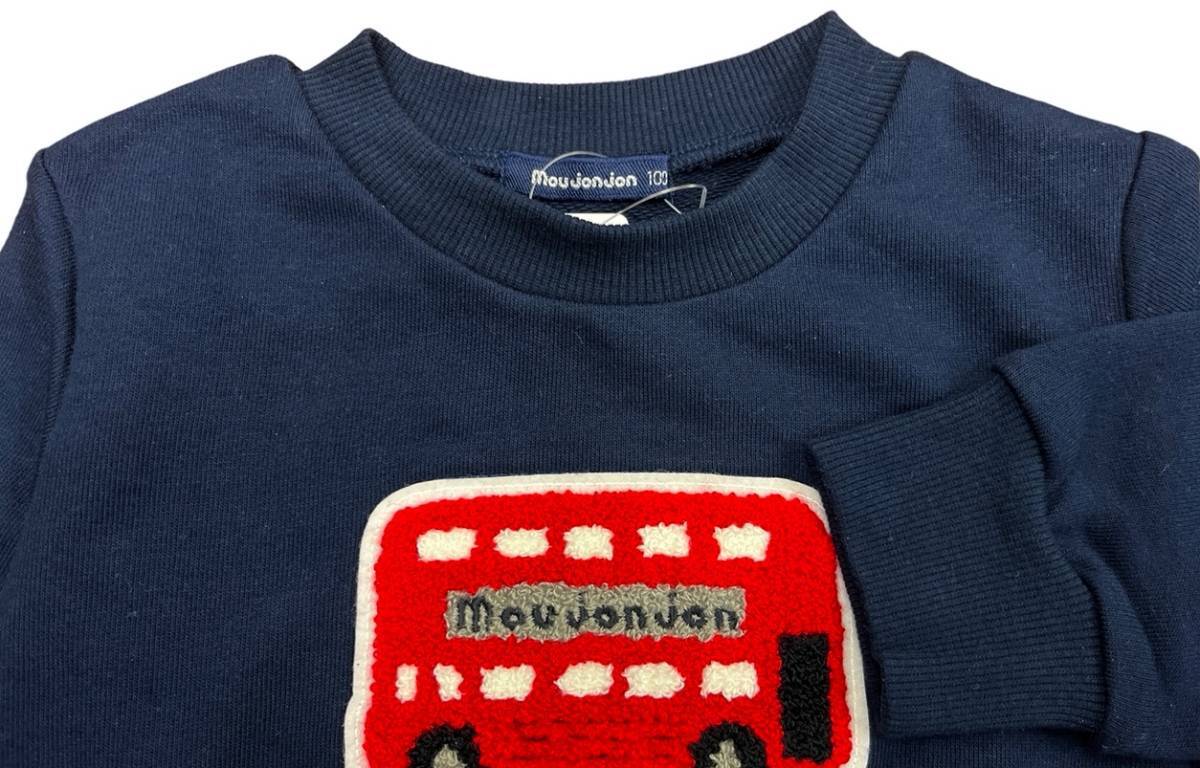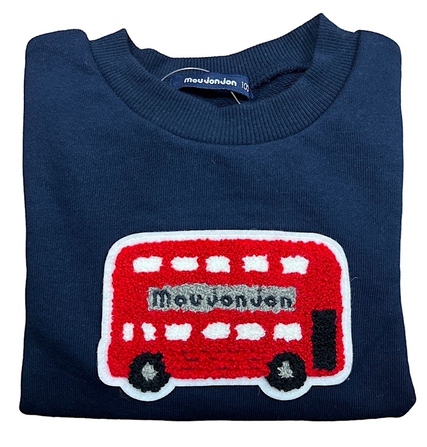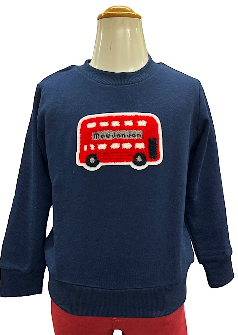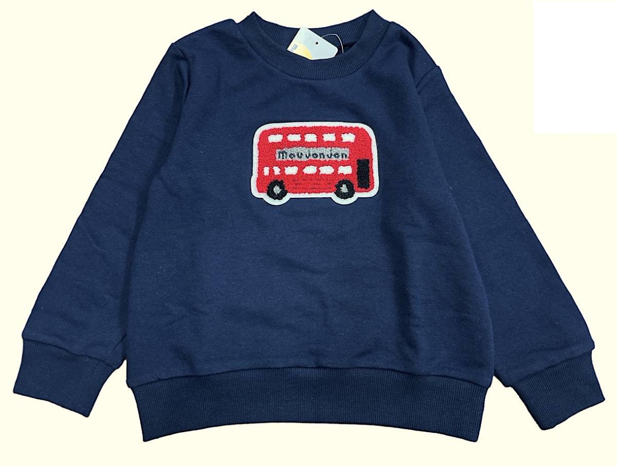 即決 新品タグ付 Moujonjon ムージョンジョン★さがら刺繍 ロンドンバス 裏毛 トレーナー★お手頃価格★130cm 9-10才 ¥2200