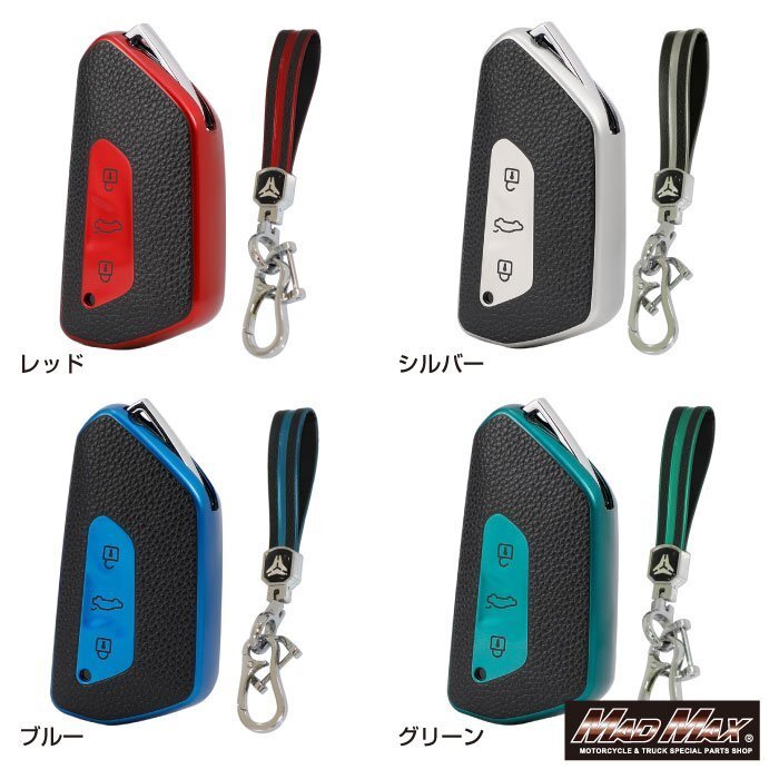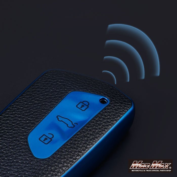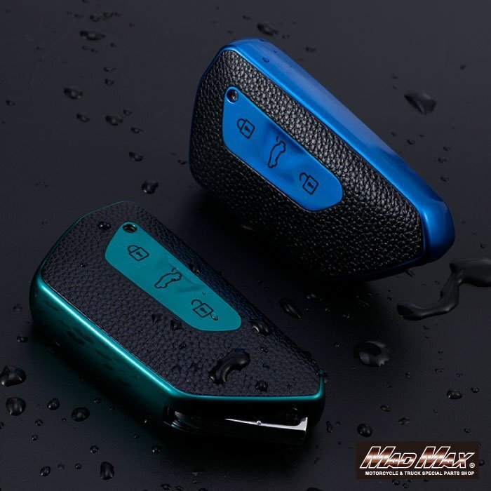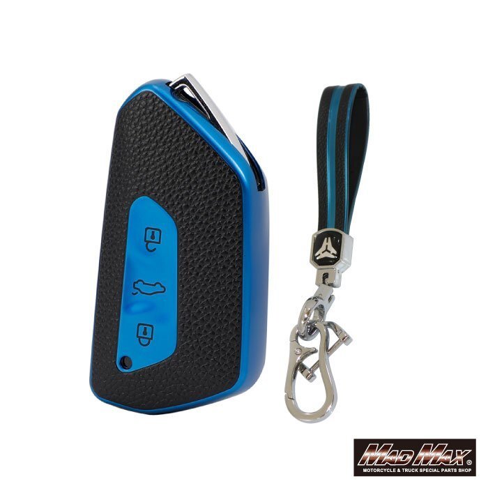 フォルクスワーゲン専用 レザー調 TYPE G 3ボタン式 TPUソフト スマートキーケース ブルー