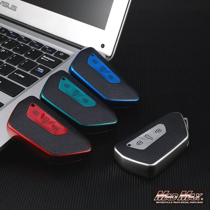フォルクスワーゲン専用 レザー調 TYPE G 3ボタン式 TPUソフト スマートキーケース ブルー。