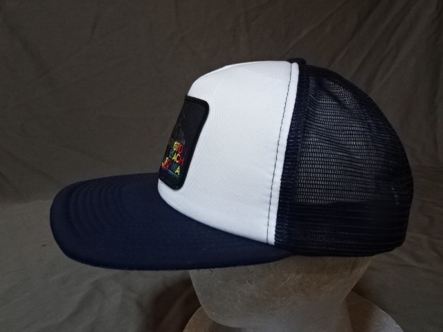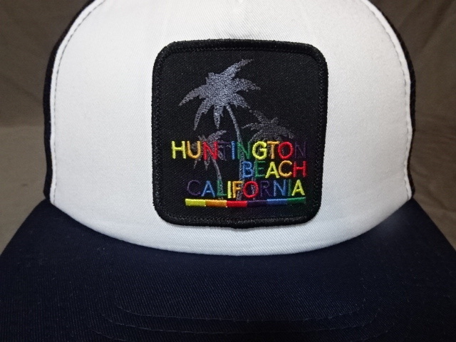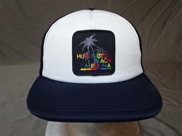 激レア USA購入 アメリカ カリフォルニア州 人気観光地【HUNTINGTON BEACH CALIFORNIA】ロゴ刺繍ワッペン付メッシュキャップ 中古良品