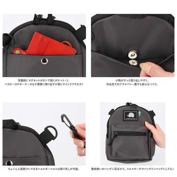 商品説明 | ・・ハリネズミのモチーフが印象的なワンポイント♪大人気「SCANDINAVIAN FOREST」から、コンパクトな「ミニリュックポシェット」が新登場。 ・遊びごころ溢れる小さなリュック型のシルエットは、お出掛けにいつでも連れて行きたくなる可愛らしさ。 ・ポシェットの開口部は、左右どちらからも開きやすいダブルファスナー仕様。小物がサッと取り出しやすく、外出先でのプライバシー面でも安心なつくり。 ・メインルームには、スマートフォンや二つ折り財布などお出掛けに必要なアイテムがミニマムに収納できるサイズ感。 ・メインルーム内側にオープンポケットが1つあるので、ちょっとしたコスメなど小物の仕分けがとっても楽ちん。 ・バッグ前面にミニファスナーポケット×1、背面側にマグネットボタンで開くポケット×1を設け、パスケースやキーケースなど頻繁に取り出す小物にクイックアクセス! ・ちょこんと肩掛けにできるショルダーベルトは取り外しが可能。普段使いのバッグに忍ばせて、コスメポーチやバッグインバッグにしてもOK! ・光沢感のある表生地は、汚れや水滴を玉のように弾くはっ水ナイロン仕様。ベーシックカラーからくすみ感のあるアースカラーまで、ファッションに合わせやすいカラーラインナップ。 ・・「SCANDINAVIAN FOREST」(スカンジナビアン・フォレスト)は、大人気「MOZ」の姉妹ブランドとしても有名な、スウェーデン発の北欧雑貨ブランド。 |
