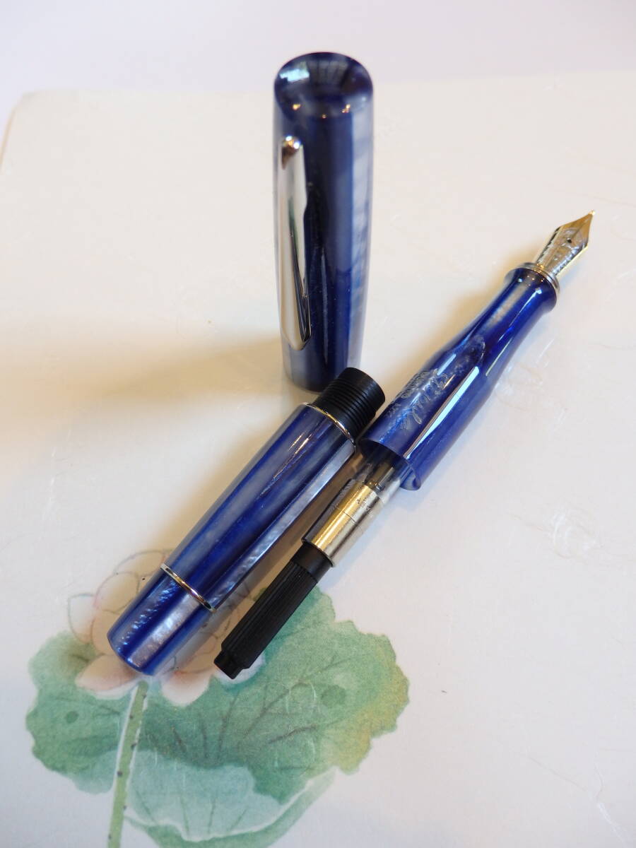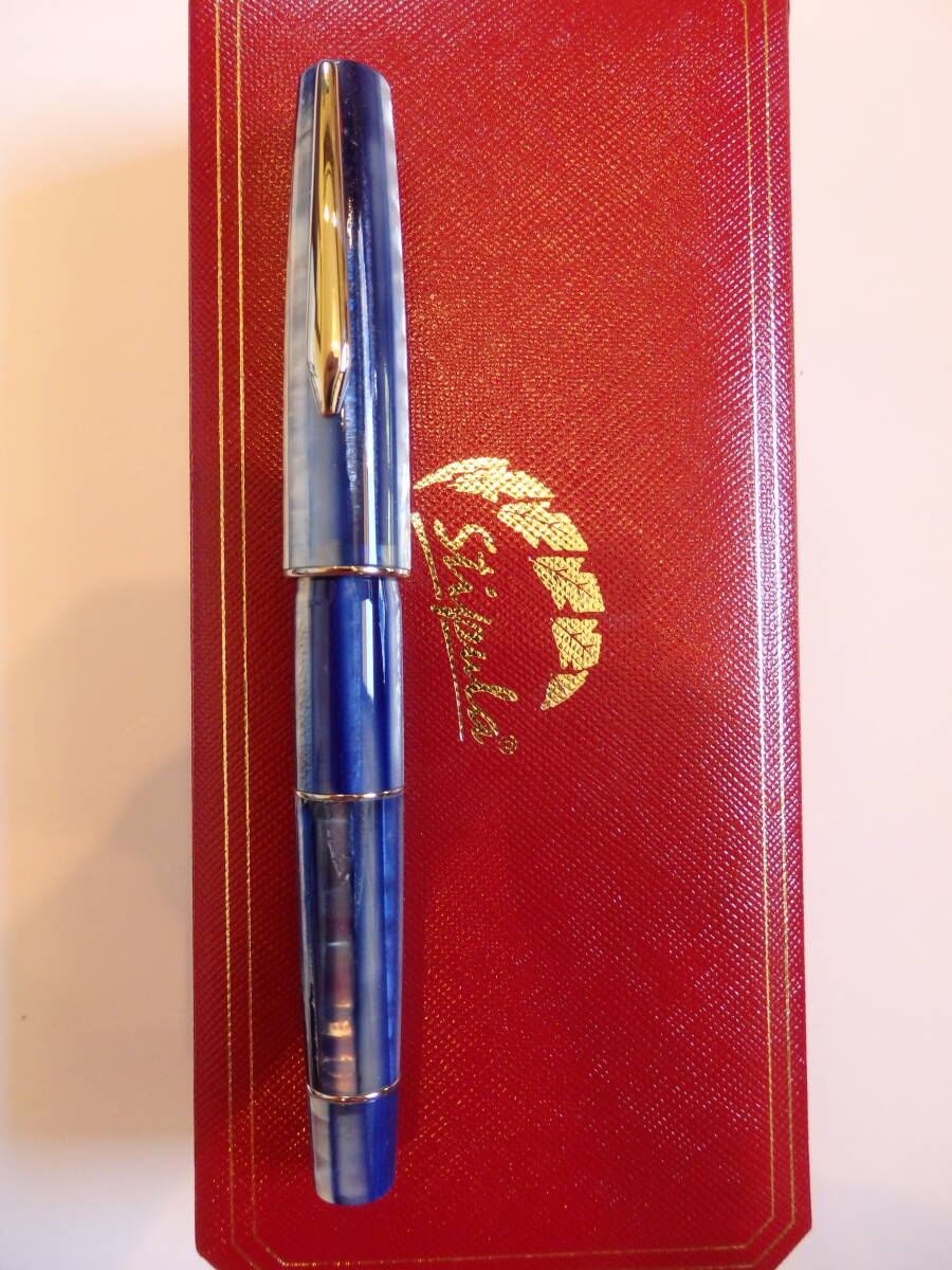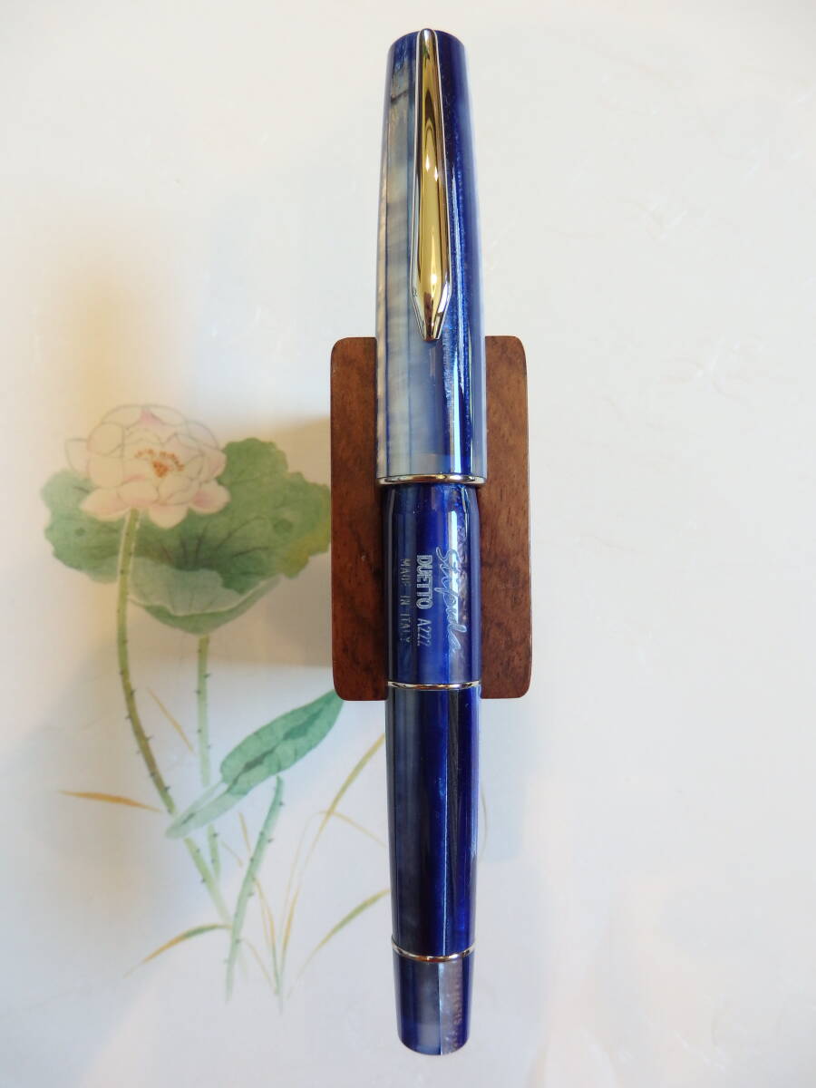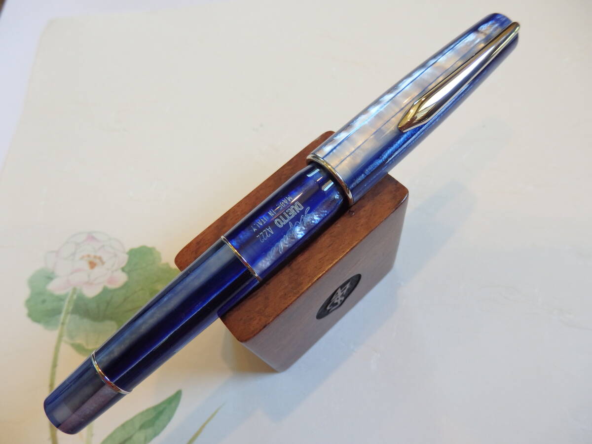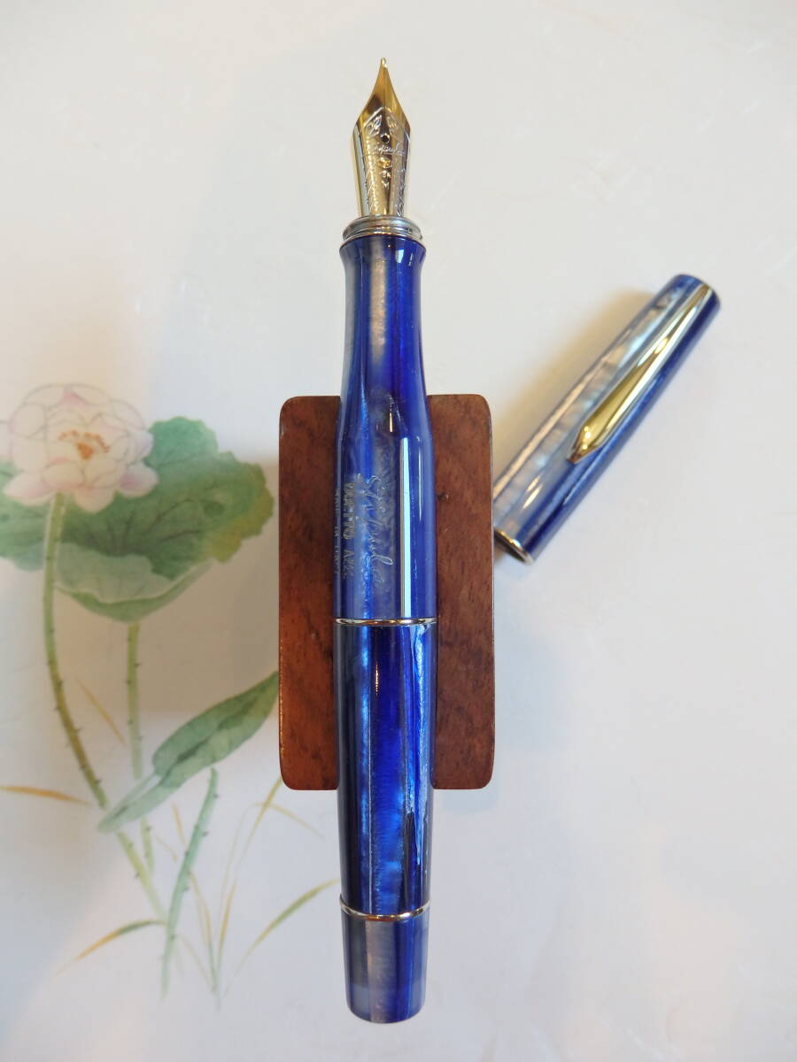 シャル(貝)のようなブルーレジンの軸が非常に美しい逸品です。