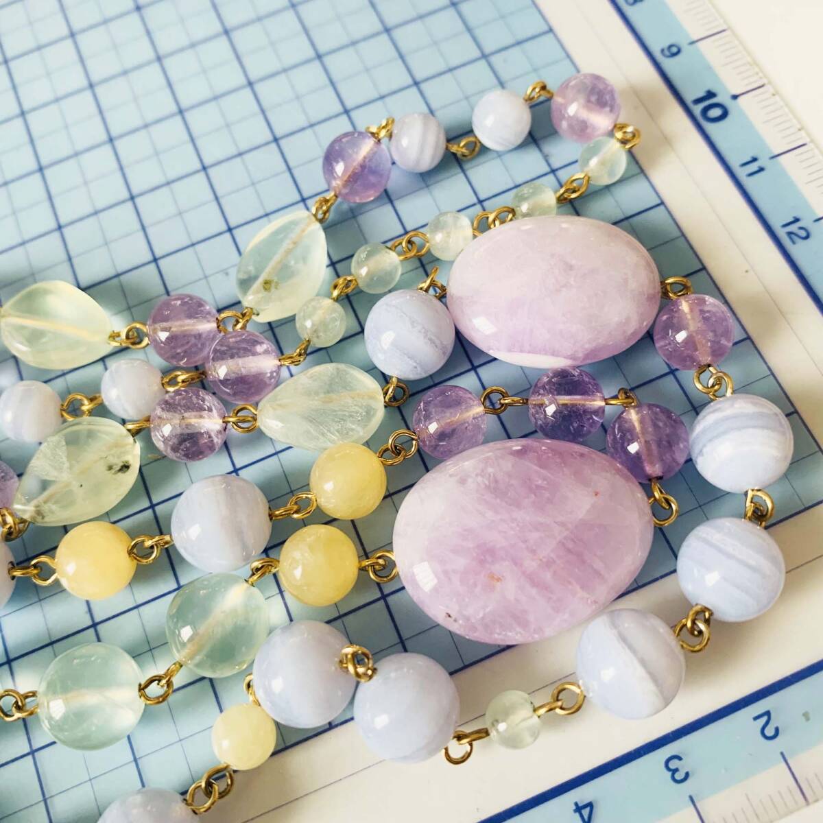 美品 天然アメシスト プリーナイト ブルーレースアゲート マルチカラー ロングネックレス No.5910