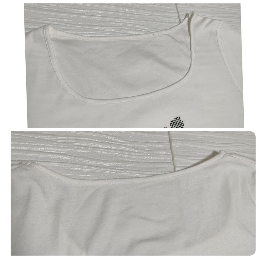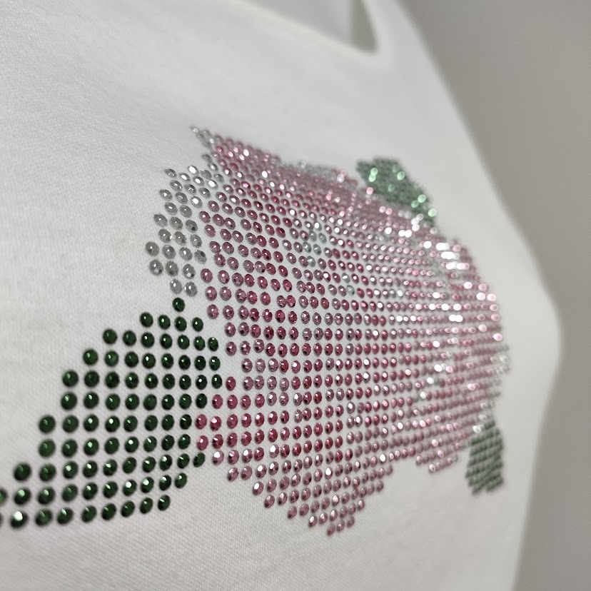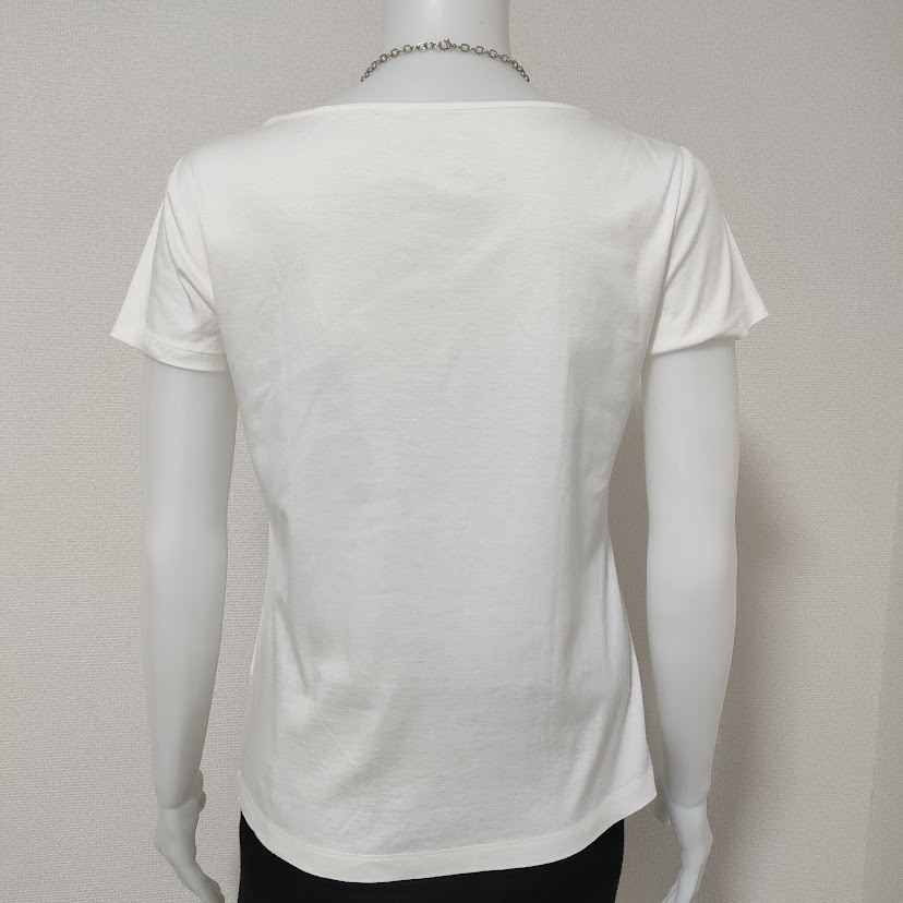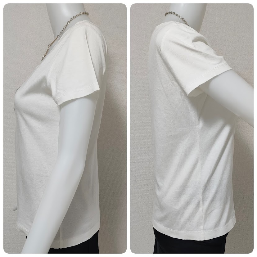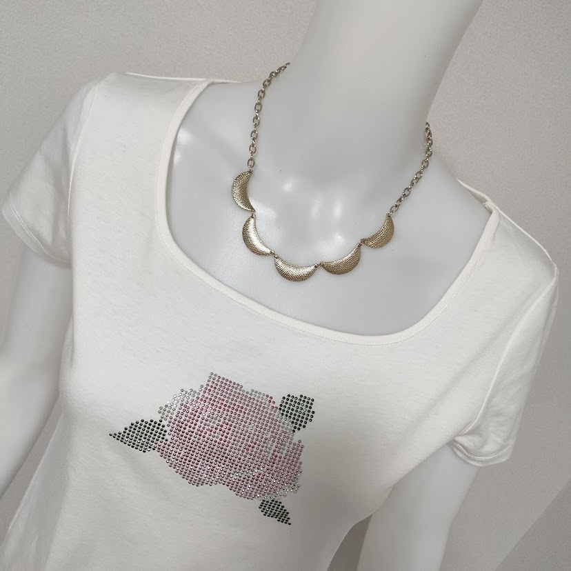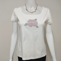 ru174 クロスプラス レディース Tシャツ 半袖 エレガント 白 ビジュー ローズ フラワー レトロ スクエアネック