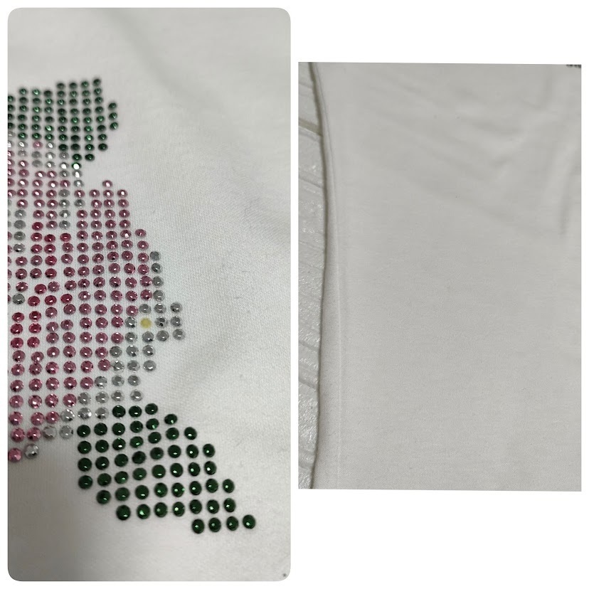 薄い小さなシミとビジューが1個かけています。その他使用感あります。