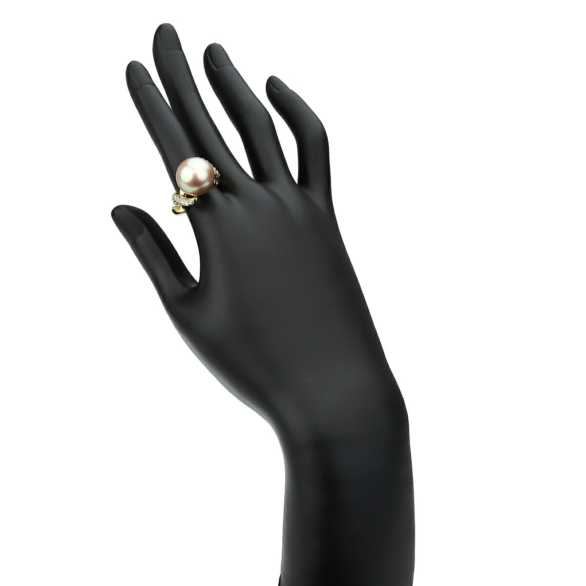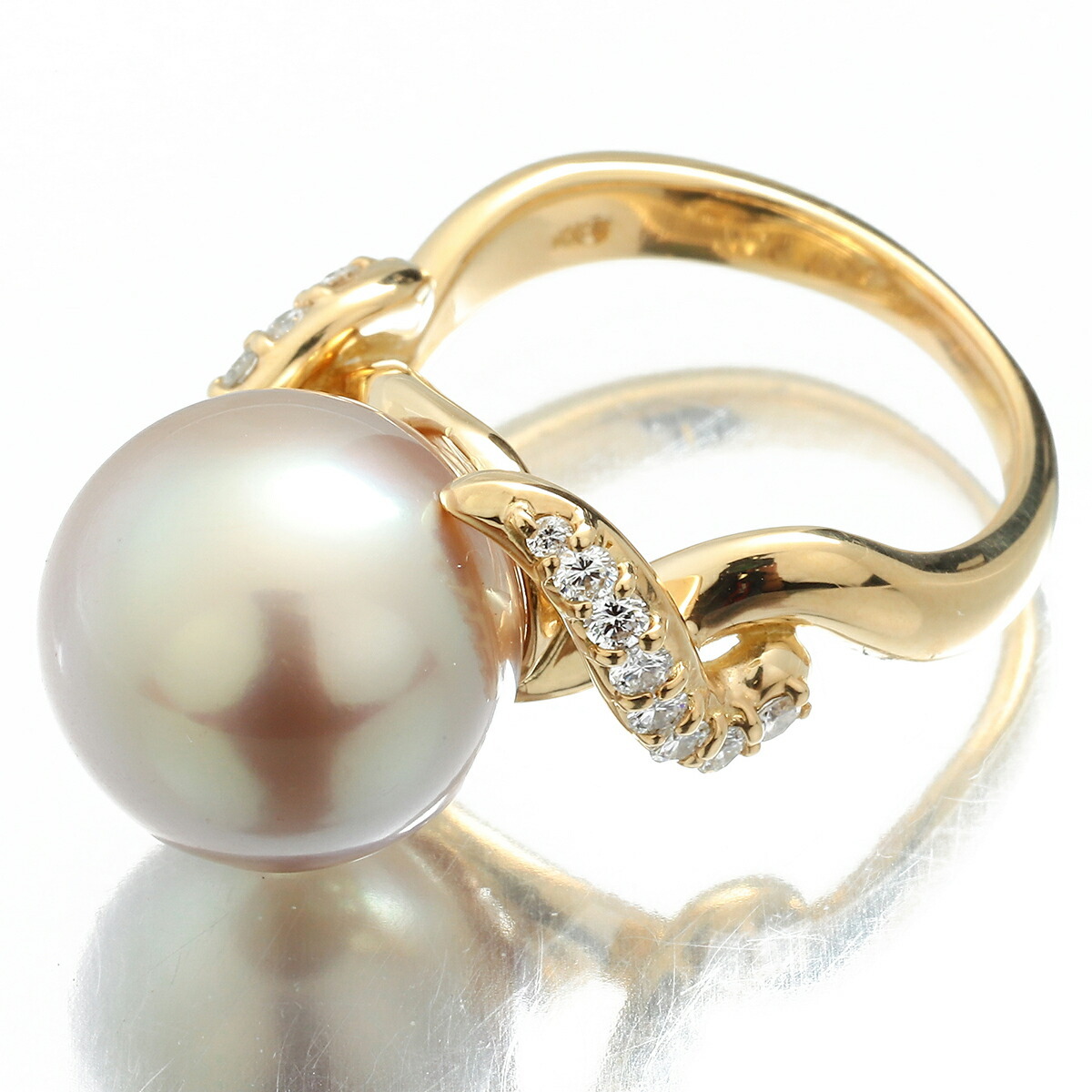 ねじれるようなイエローゴールドのデザインに大粒の白蝶真珠が存在感を放つリング。芸術性を感じるシルエットはファッションに高級感をプラスし、ワンランク上の存在に引き上げてくれるかのような力を感じます。