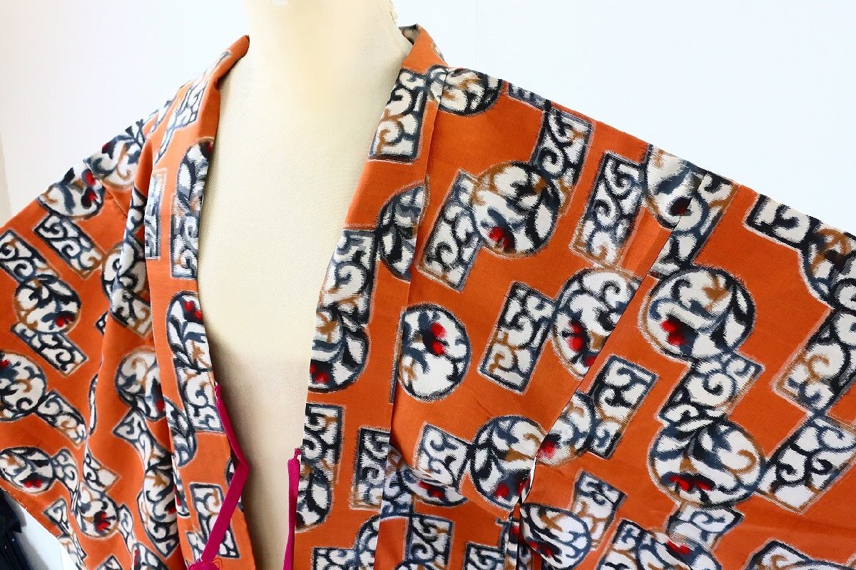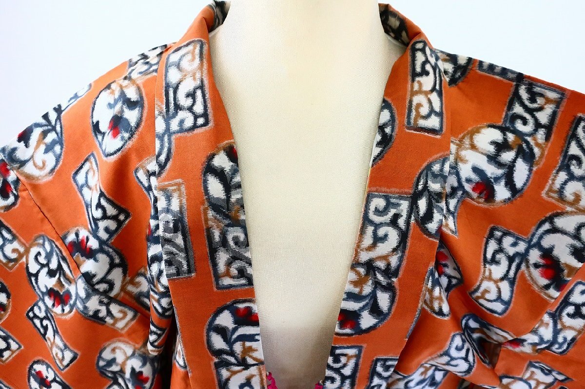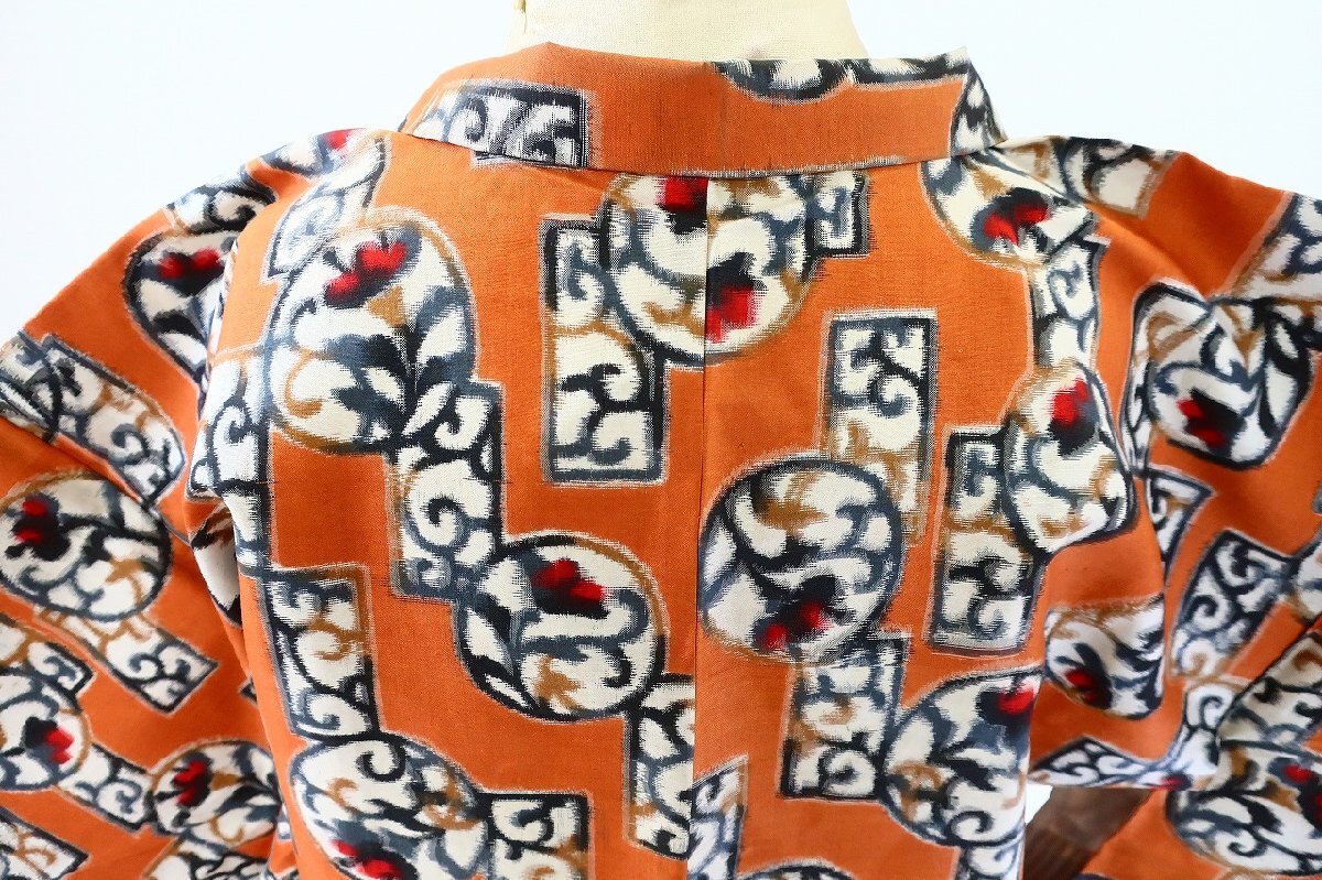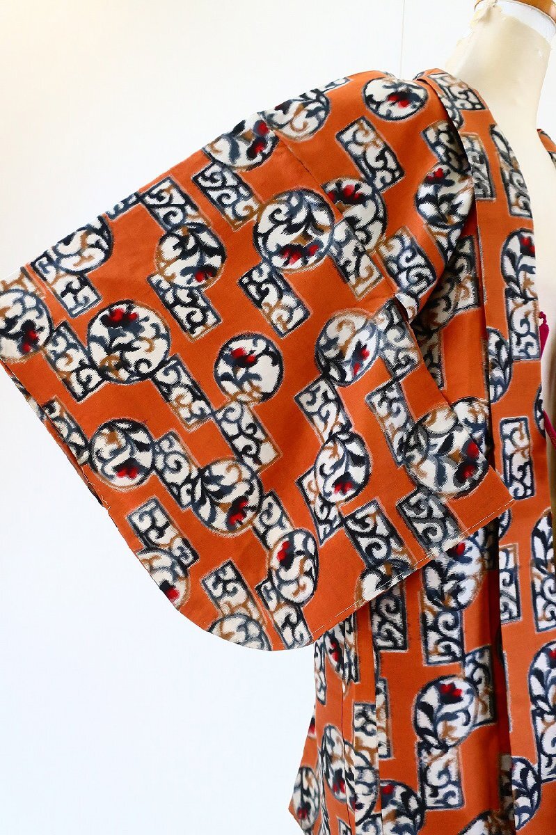 【着物フィ】美品 アンティーク 銘仙 長羽織 黄茶色 身丈93cm レトロ 大正モダン 仕立て上がり 正絹 kimono 16571 |