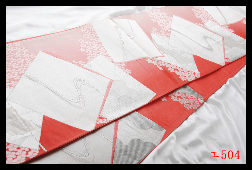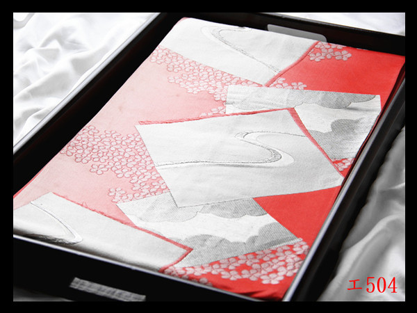 A【エ504】西陣美品 振袖可 色紙桜散らし紋 真朱色地 気品豊かに 正絹六通高級美術袋帯 検★着物名古屋帯和装小物帯締め