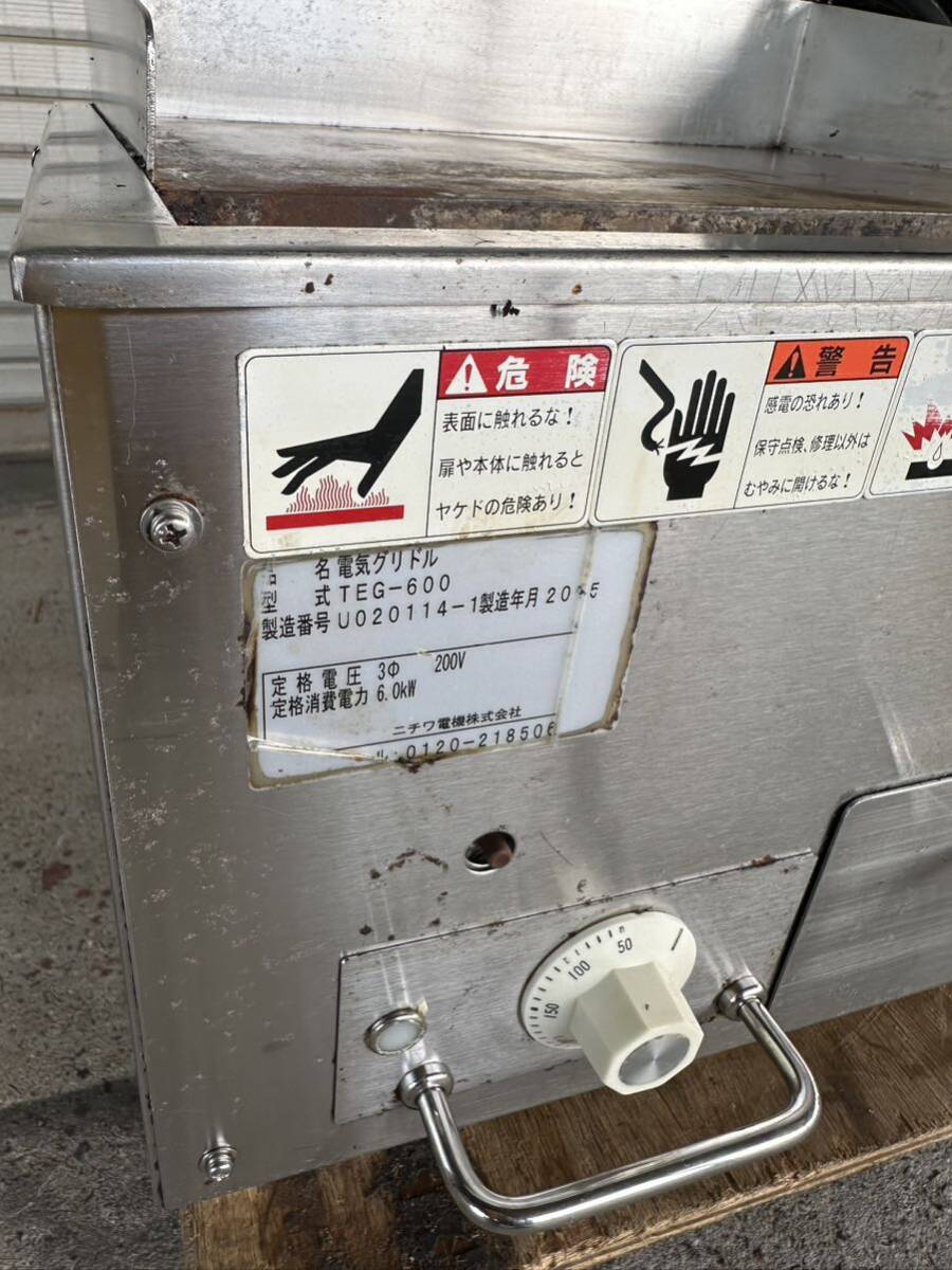 ニチワ 2015年 業務用 電気グリドル 鉄板焼き グリドル 卓上鉄板焼 TEG-600 3相200V 厨房機器